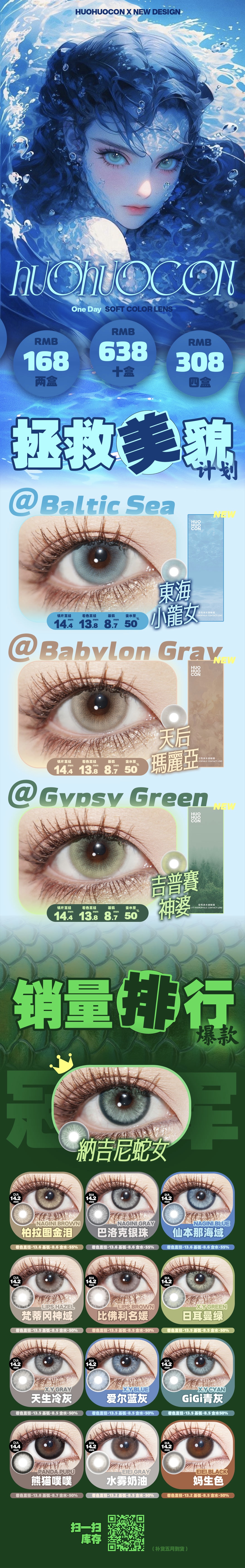 Huohuocon日抛活动·0-800度(无525/575)·东海小龙女&天后玛丽亚&吉普赛神婆&纳吉尼蛇女&柏拉图金泪&巴洛克银珠&仙本那海域&梵蒂冈神域&比佛利名媛&日耳曼绿&天生冷灰&爱尔蓝灰