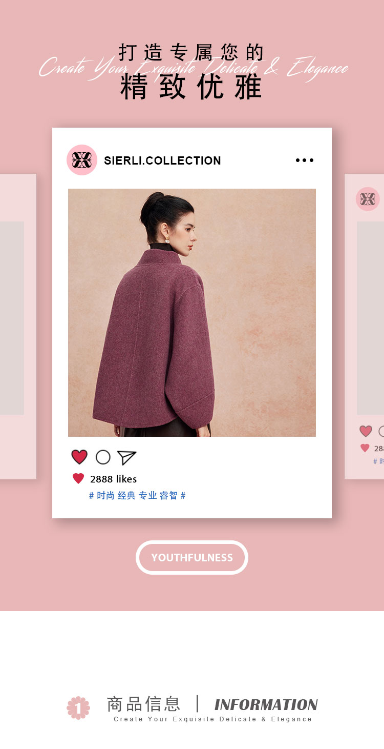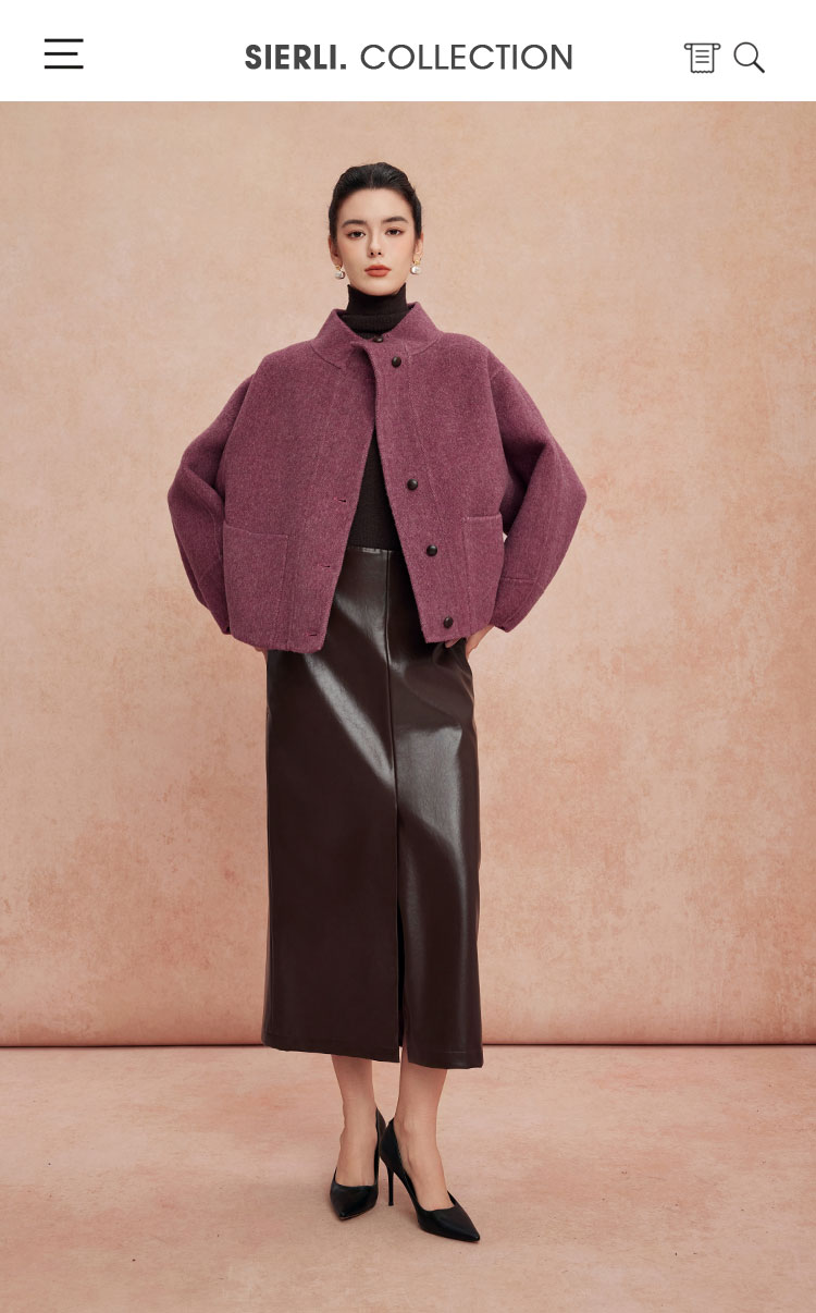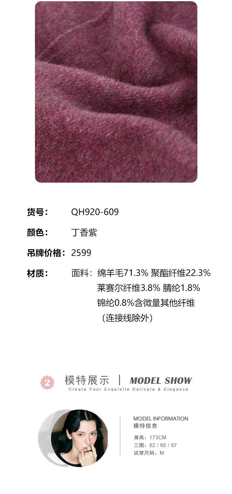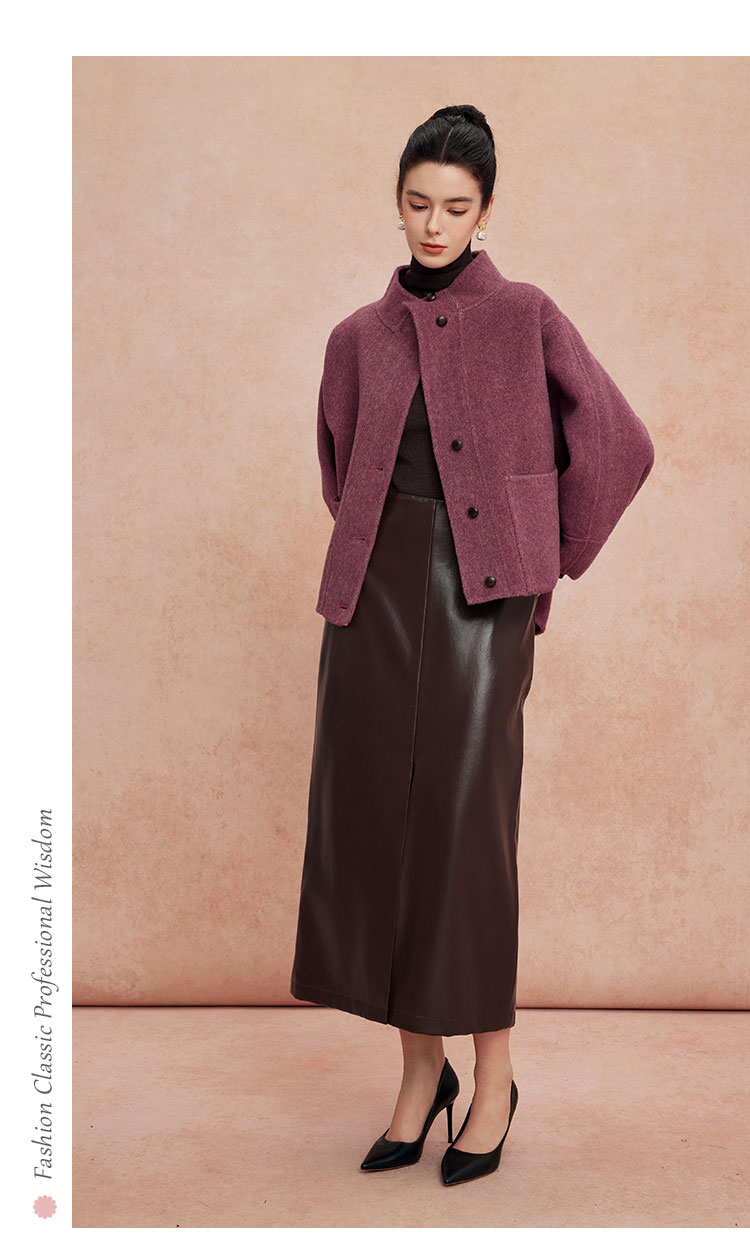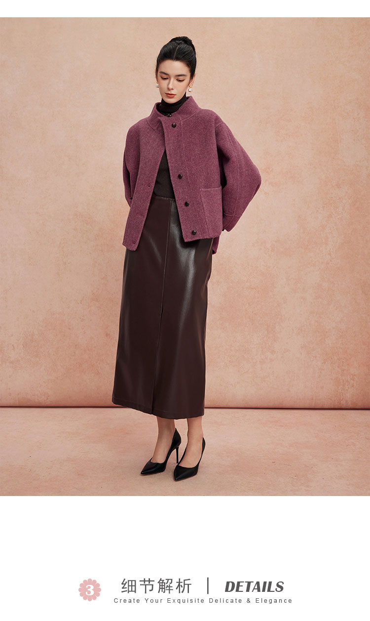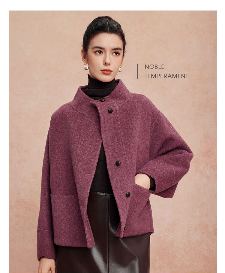 QH920斯尔丽2025新款廓形大方宽松显瘦小个子双面羊毛短款女式大衣