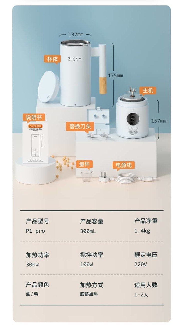 【第四代破壁机】能磨粉绞肉的臻米P1Pro多功能全自动破壁机免过滤免煮智能识别OLD显示专利降噪更静音