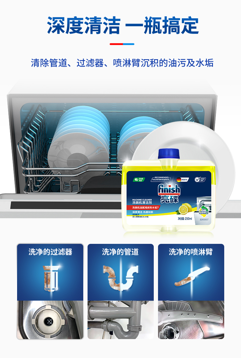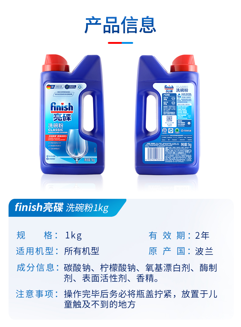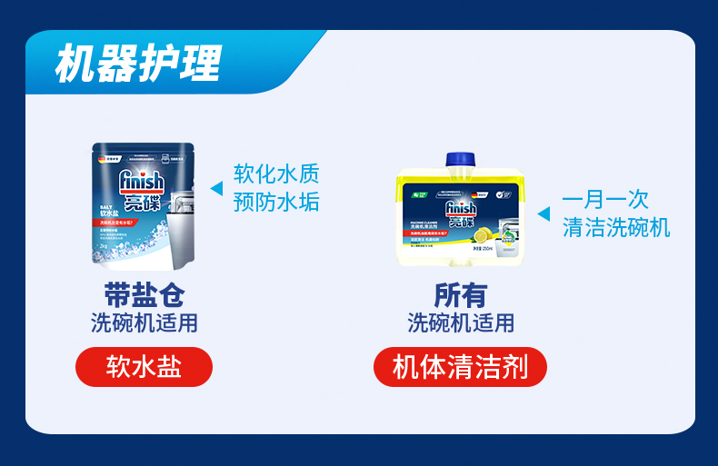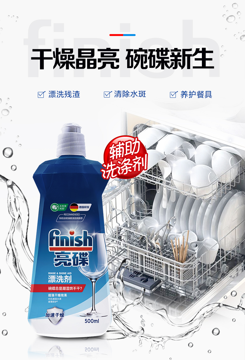 finish亮碟洗碗机专用洗涤剂洗涤粉4瓶/专用盐*2/漂洗剂 *2/机体*2西门子美的海尔洗碗机可用亮碟剂洗碗粉套装