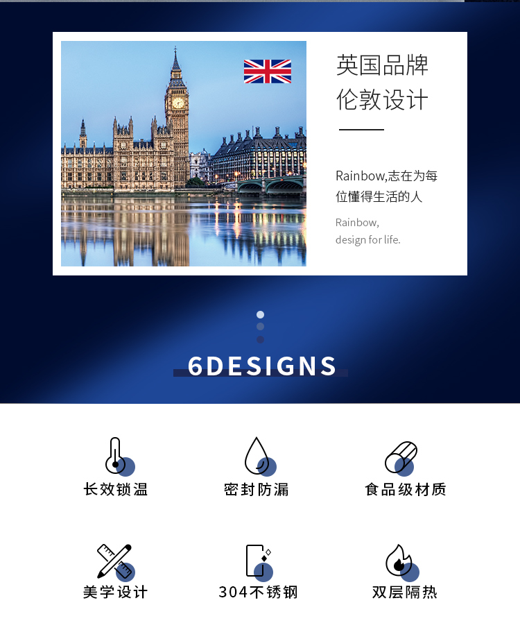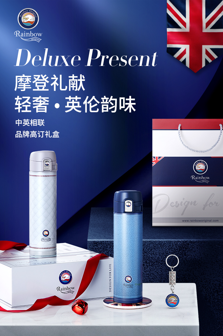 英国瑞堡Rainbow情侣保温杯一对情侣款杯子高档水杯礼盒礼品定制【瑞堡奥路】