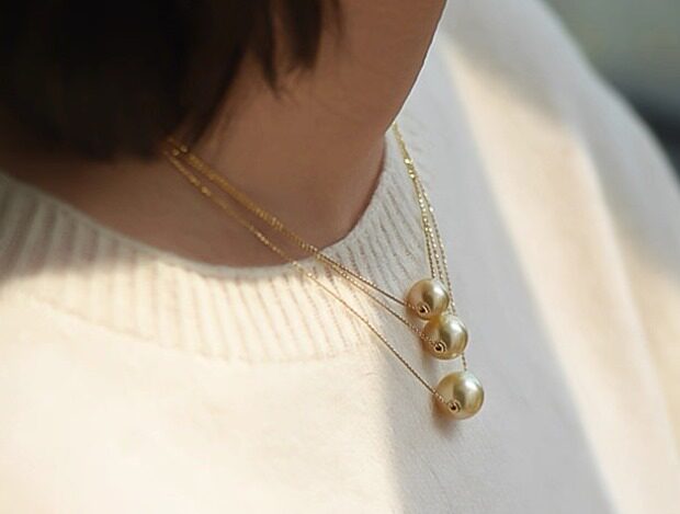 锁骨链或者稍微靠下一点 单戴或者叠戴小米珠 都能兼顾到