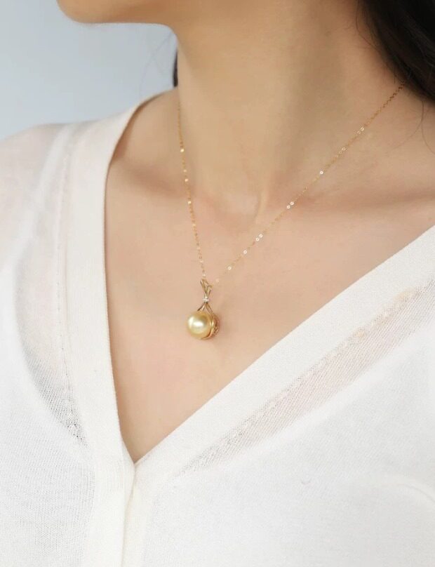 年少不知珍珠美 哈!天然海水 南洋金珠 14K+人造锆石 吊坠 二款入