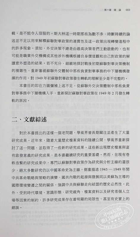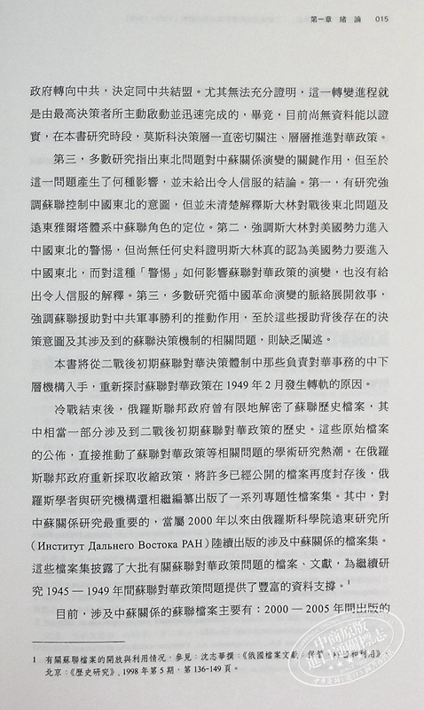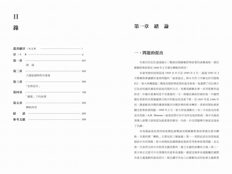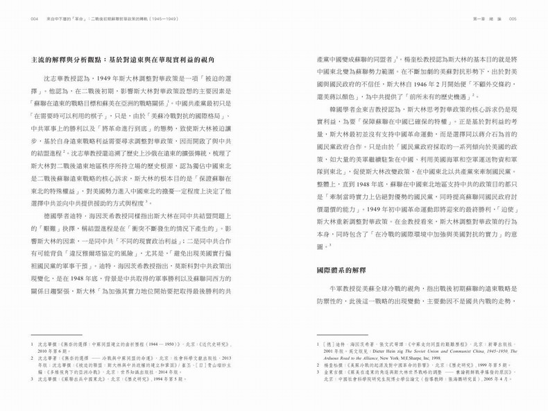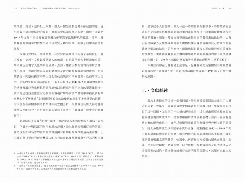 本書通過揭示二戰後初期蘇聯對華政策的演變過程,探討蘇聯對華政策在1949年2月發生轉軌的原因。蘇聯對華政策在1949年2月基本完成了轉軌,在這個過程中,蘇聯外交決策體制中那些負責對華事務的中下層機構發揮了重大的作用。以往研究通常聚焦於蘇聯高決策者的決定和行為,本書研究發現,所謂高層的決定性作用主要體現為他在這些中下層機構所建構的對華關係格局的基礎上做出最終決定。正是這些中下層機構長期“拒蔣迎共”塑造的對華關係格局,促使高層在1949年初着手調整對華政策時更容易也更願意繼續推進或利用這種格局,以達成蘇聯在中國的現實利益。