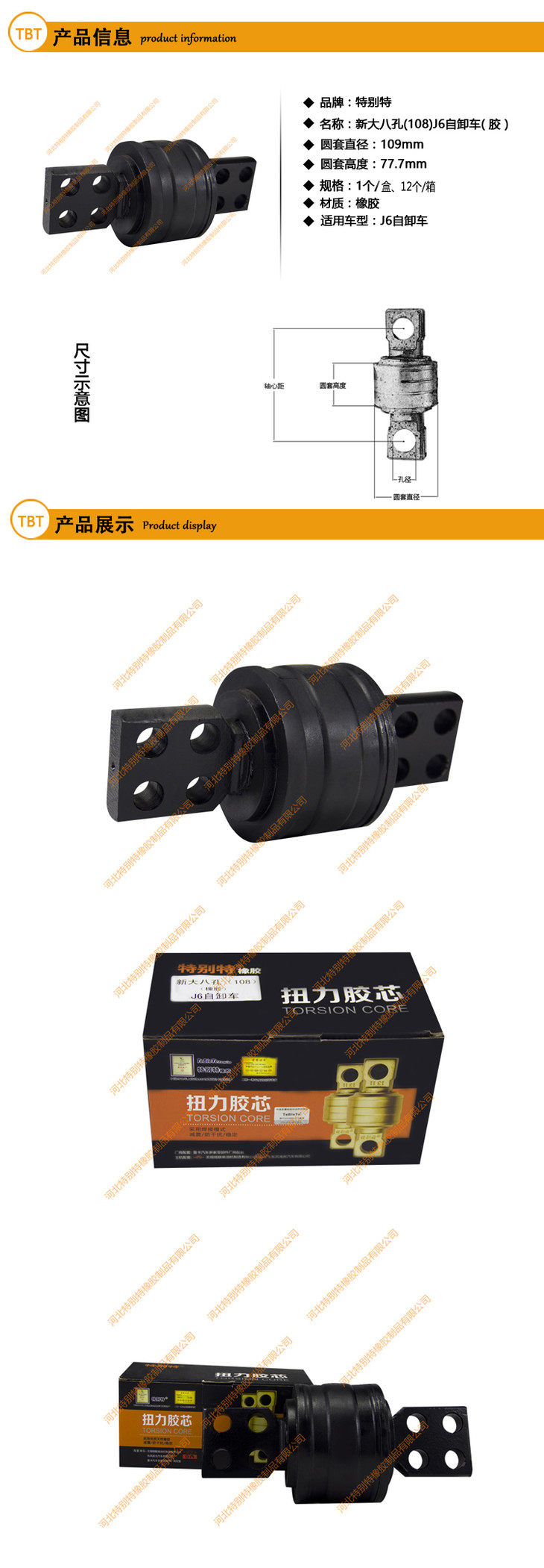 解放J6自卸车扭力胶芯(新大八孔)(胶)(108*80)(80*108)(单价=1个,12个=1箱)/解放J6自卸车拉臂套/解放J6自卸车拉力套108x80(10880)
