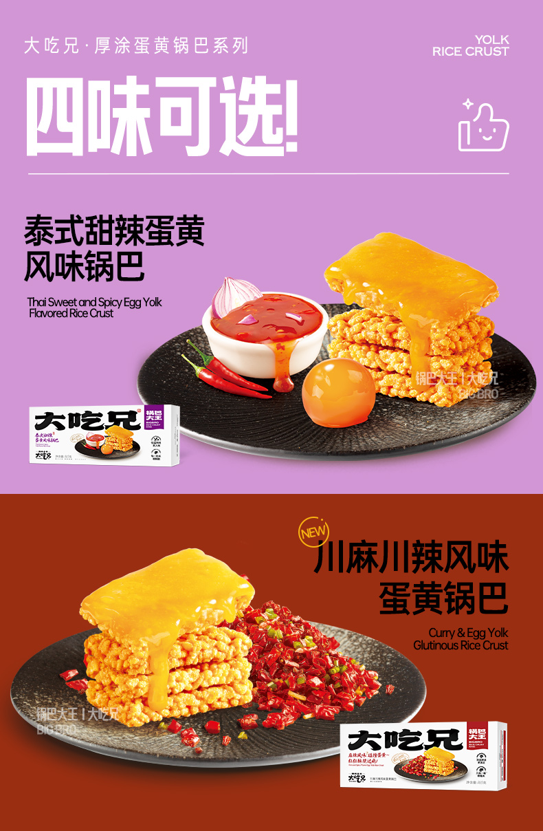 大吃兄 蛋黄锅巴(蟹香/芥末三文鱼/泰式甜辣/川麻川辣)165g