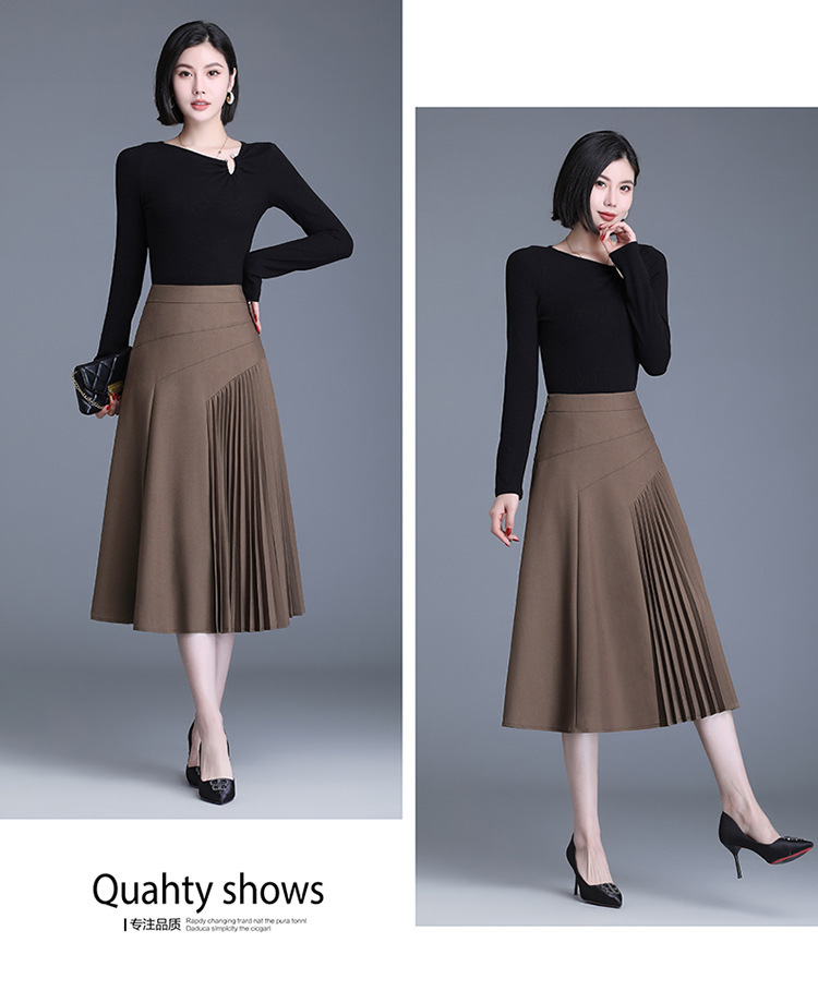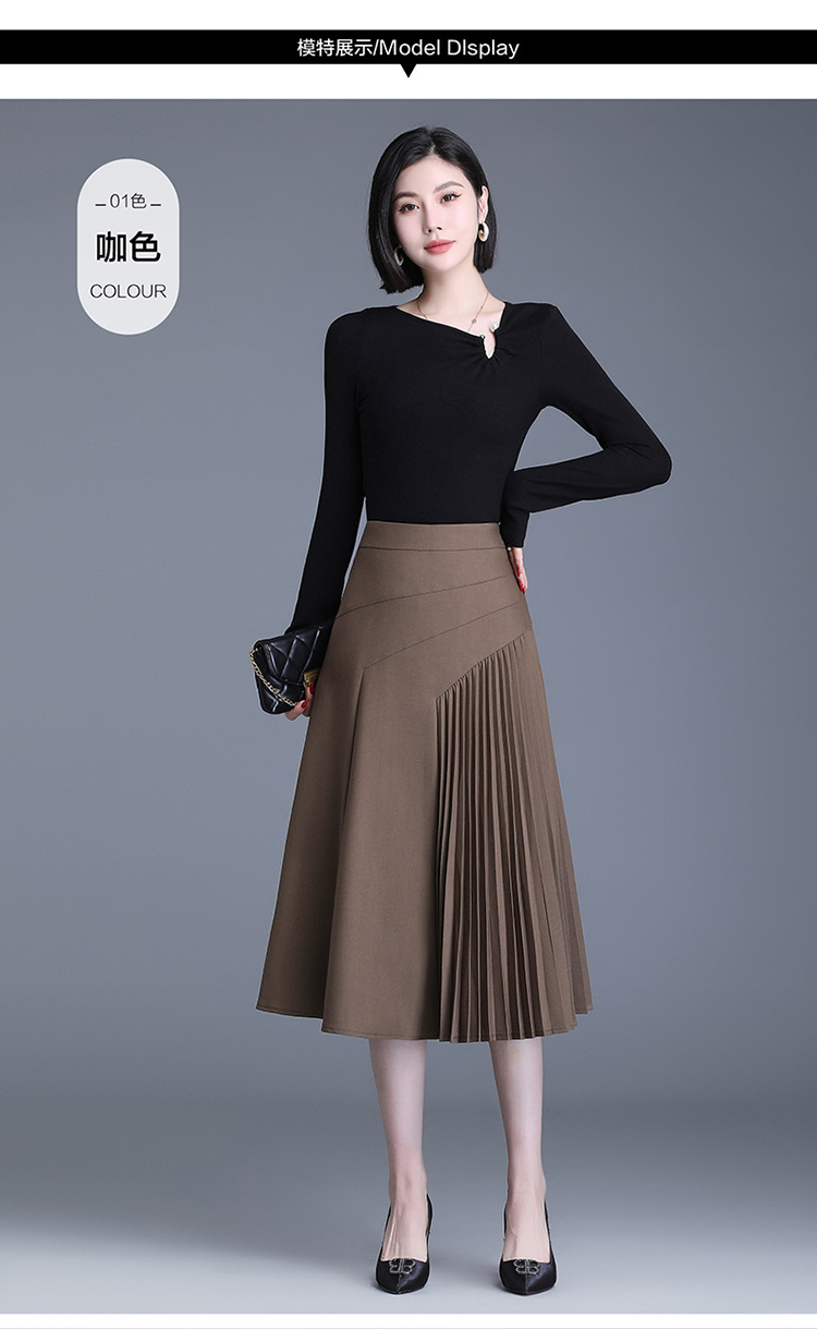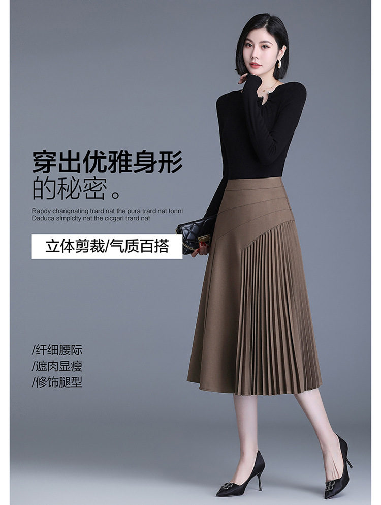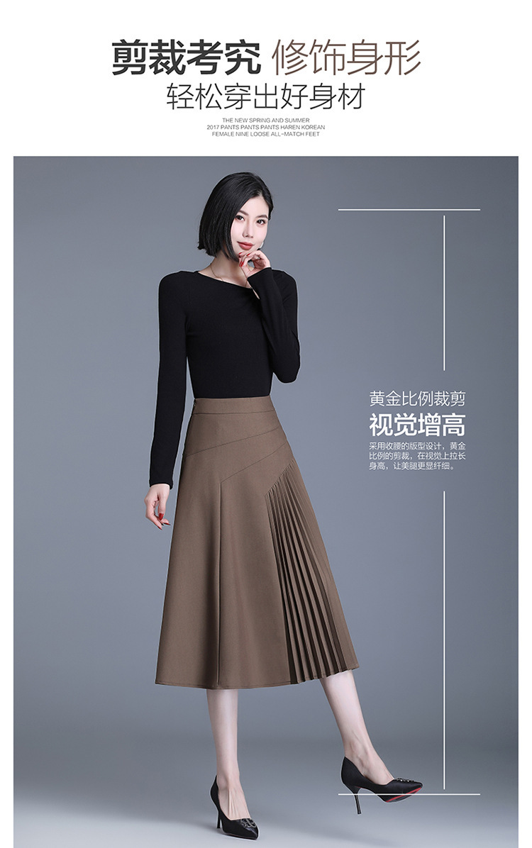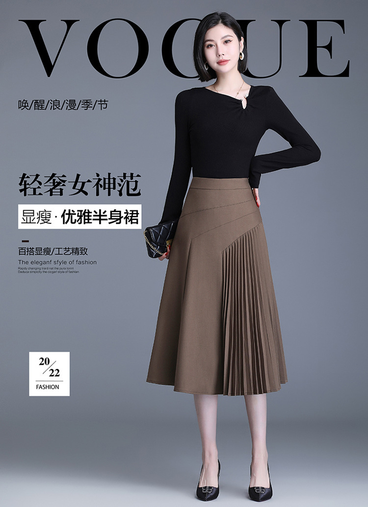 气质A字百褶半身裙女2022春季新款韩版高腰显瘦大摆百褶中长裙 TY30330