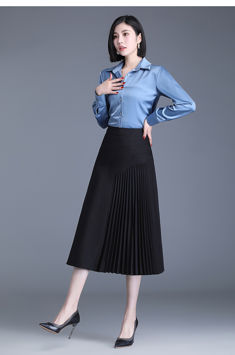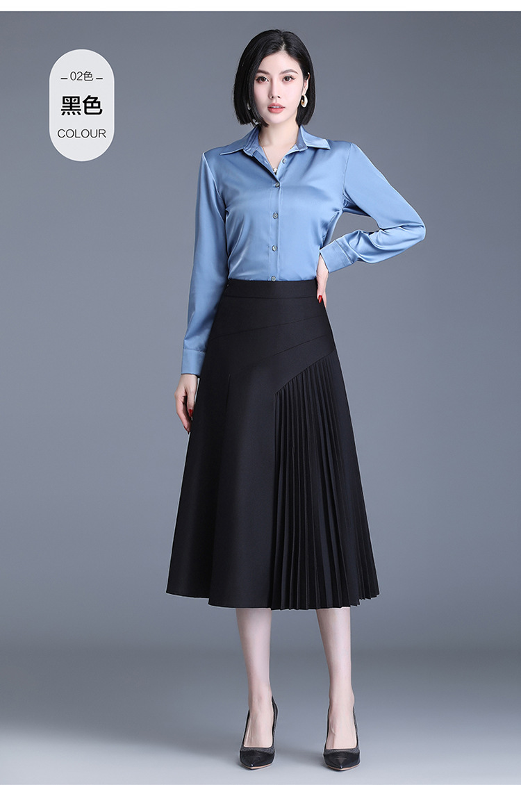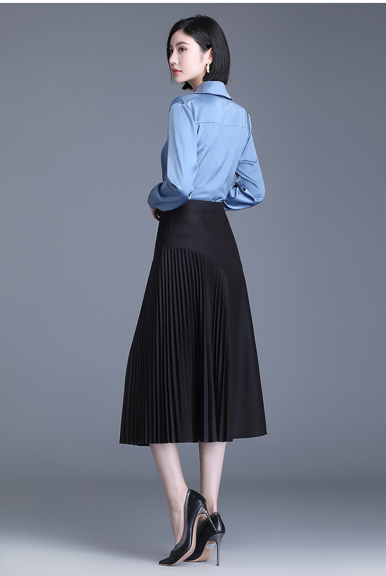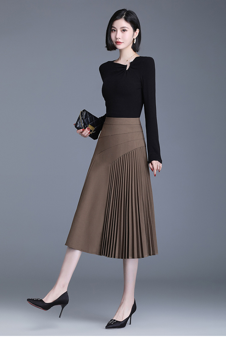 气质A字百褶半身裙女2022春季新款韩版高腰显瘦大摆百褶中长裙 TY30330