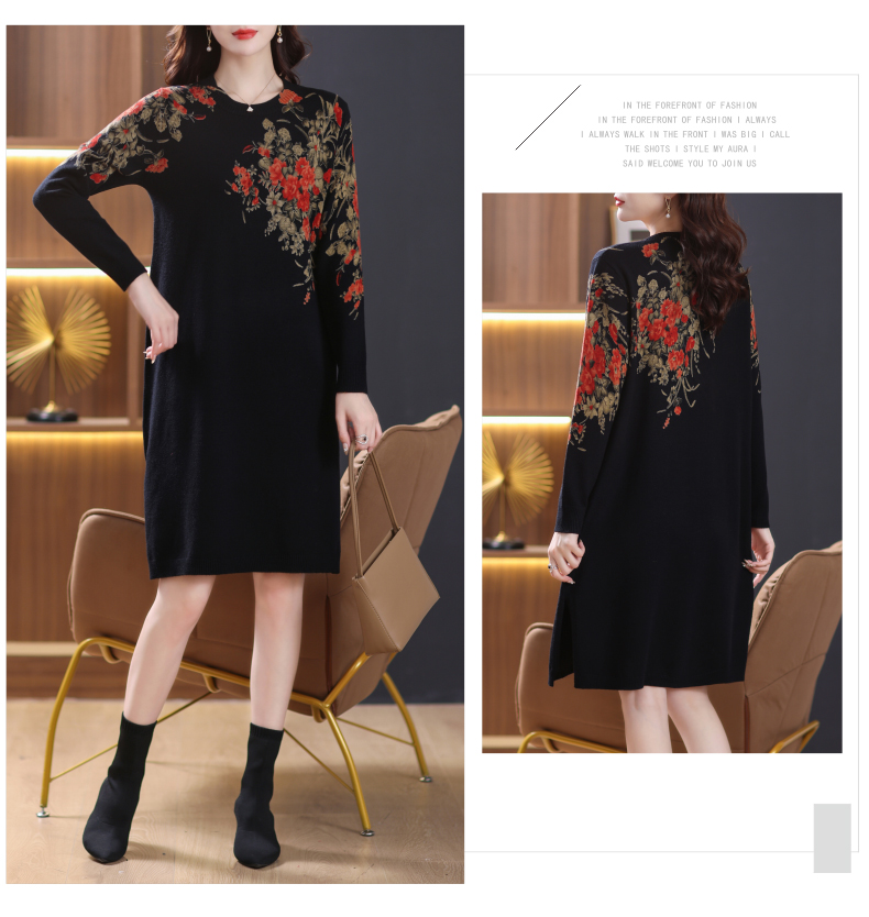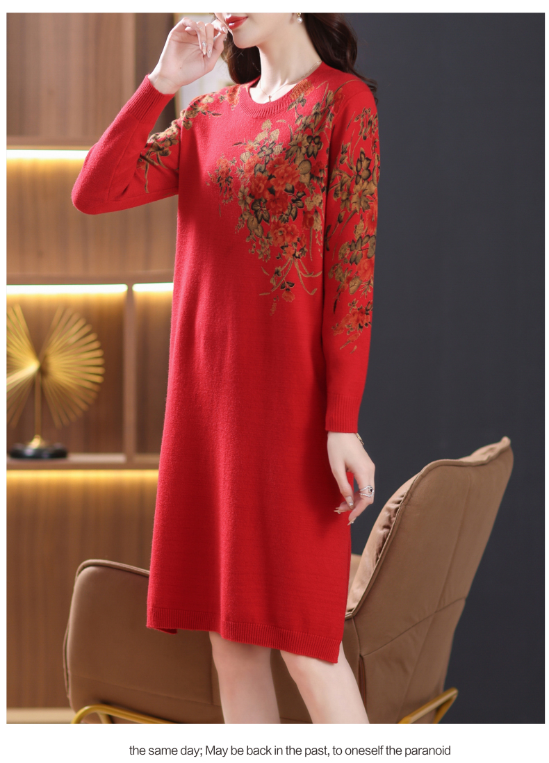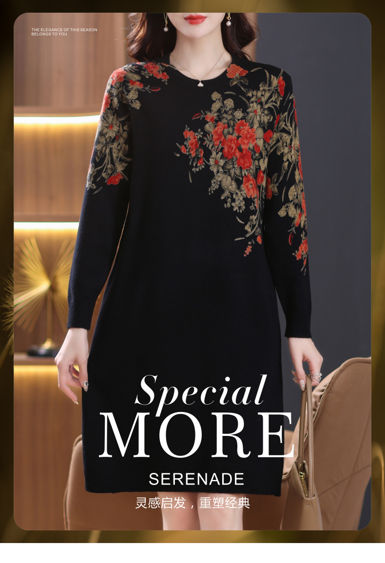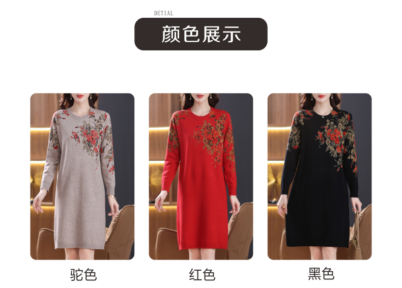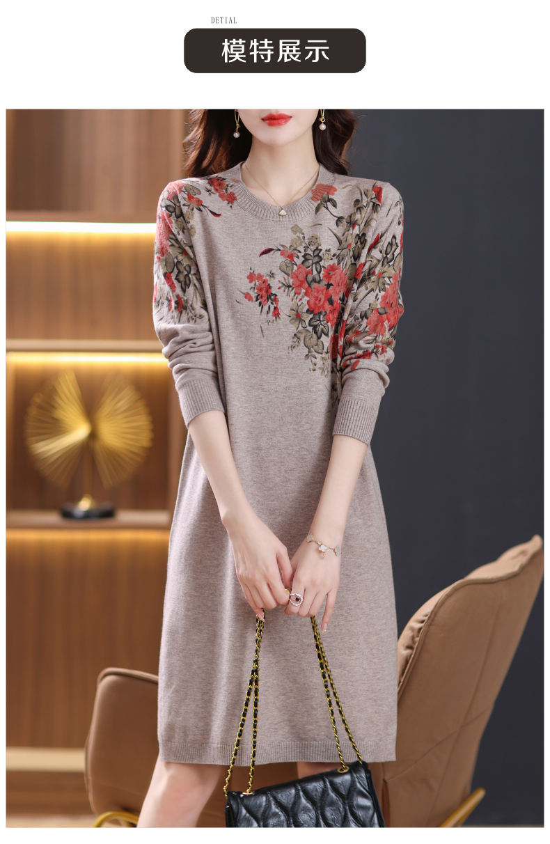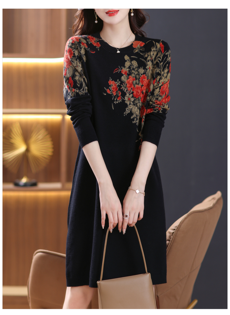 配大衣的印花毛衣连衣裙子圆领打底群加厚CC-38-8811