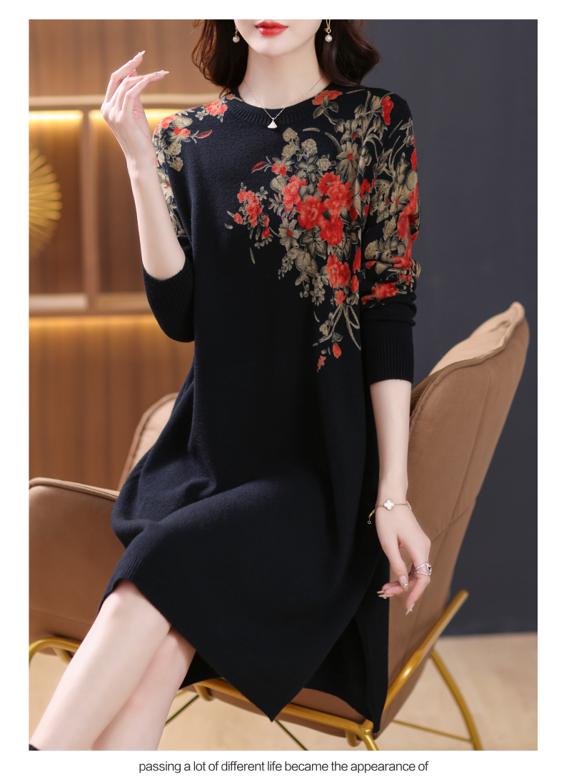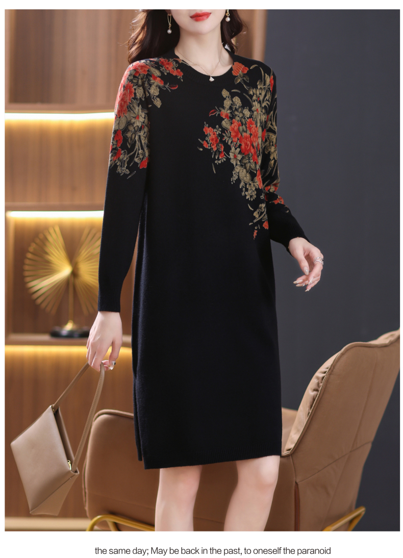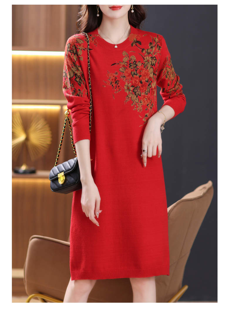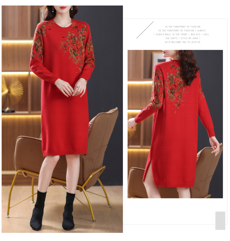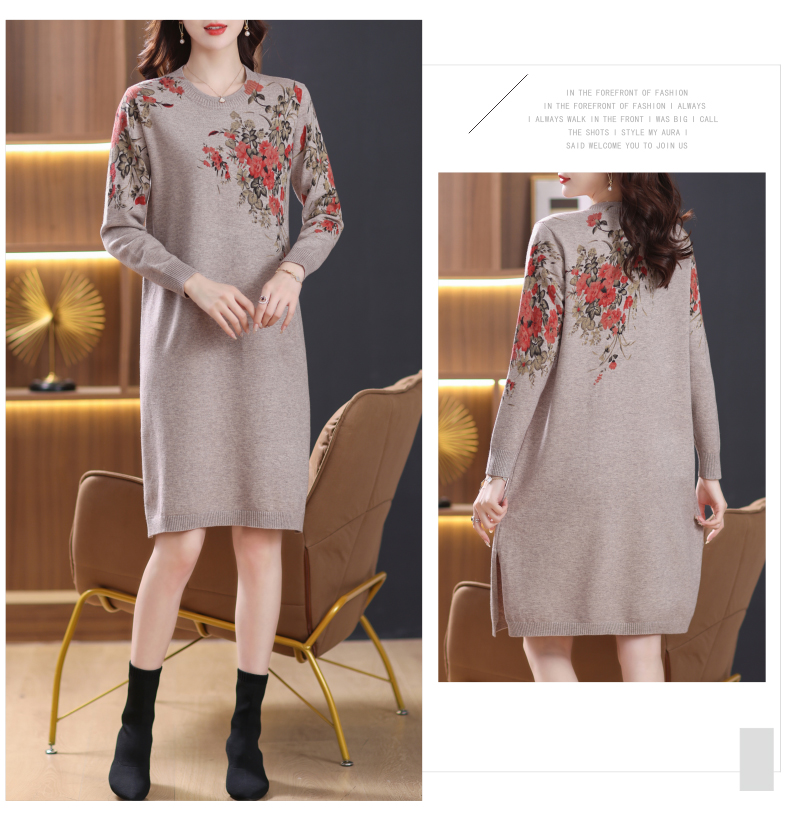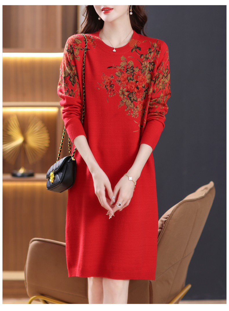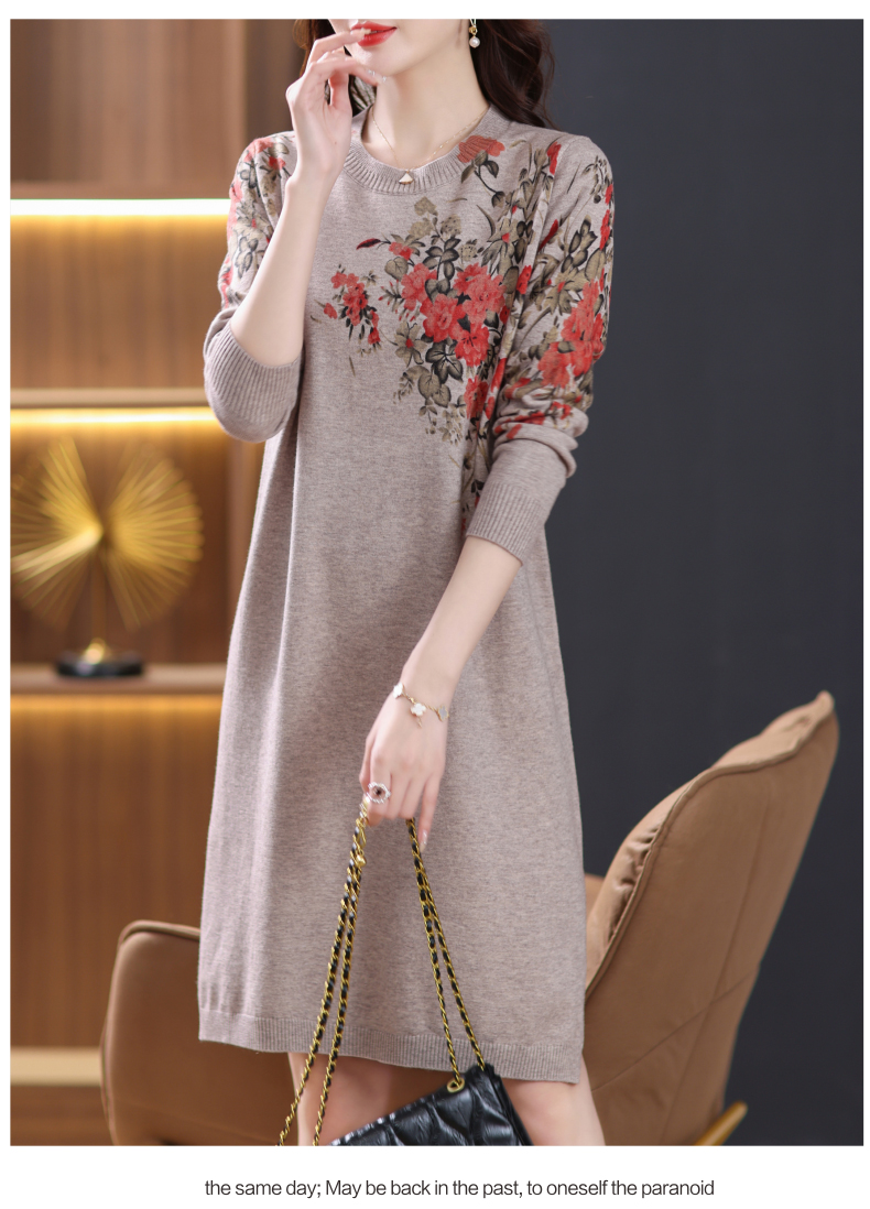 配大衣的印花毛衣连衣裙子圆领打底群加厚CC-38-8811