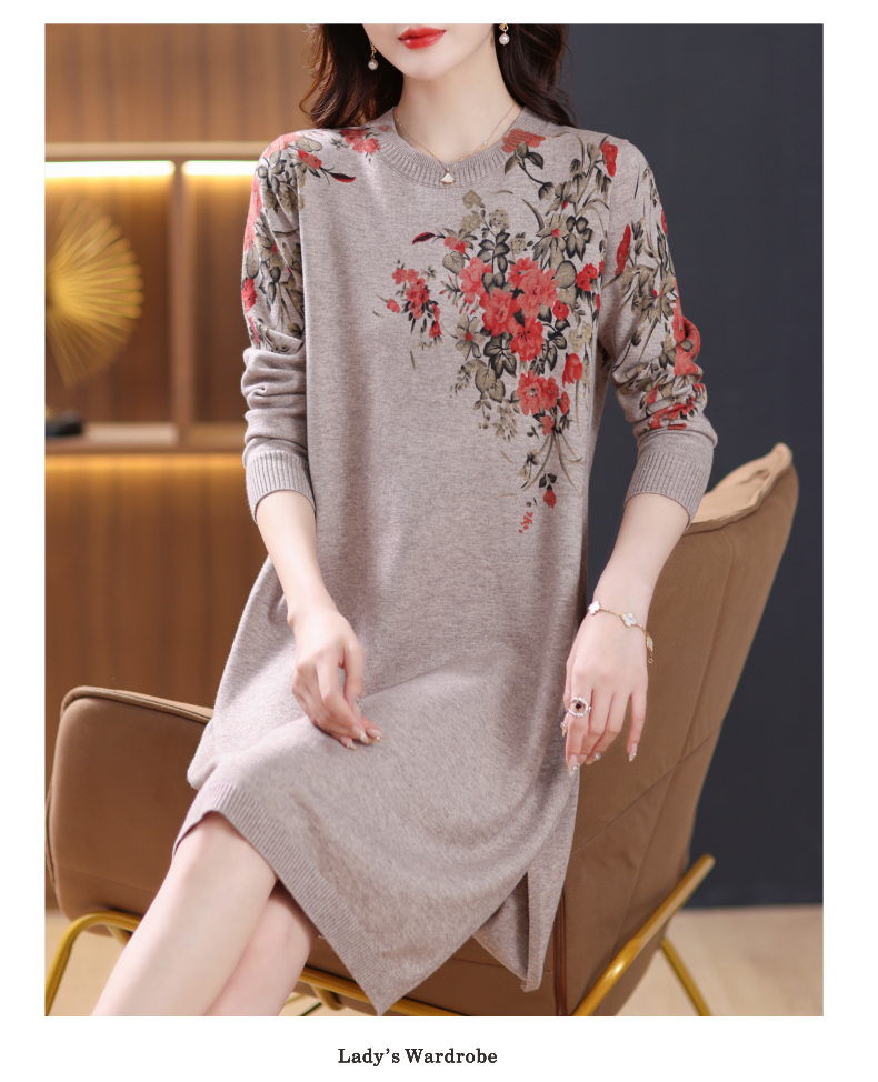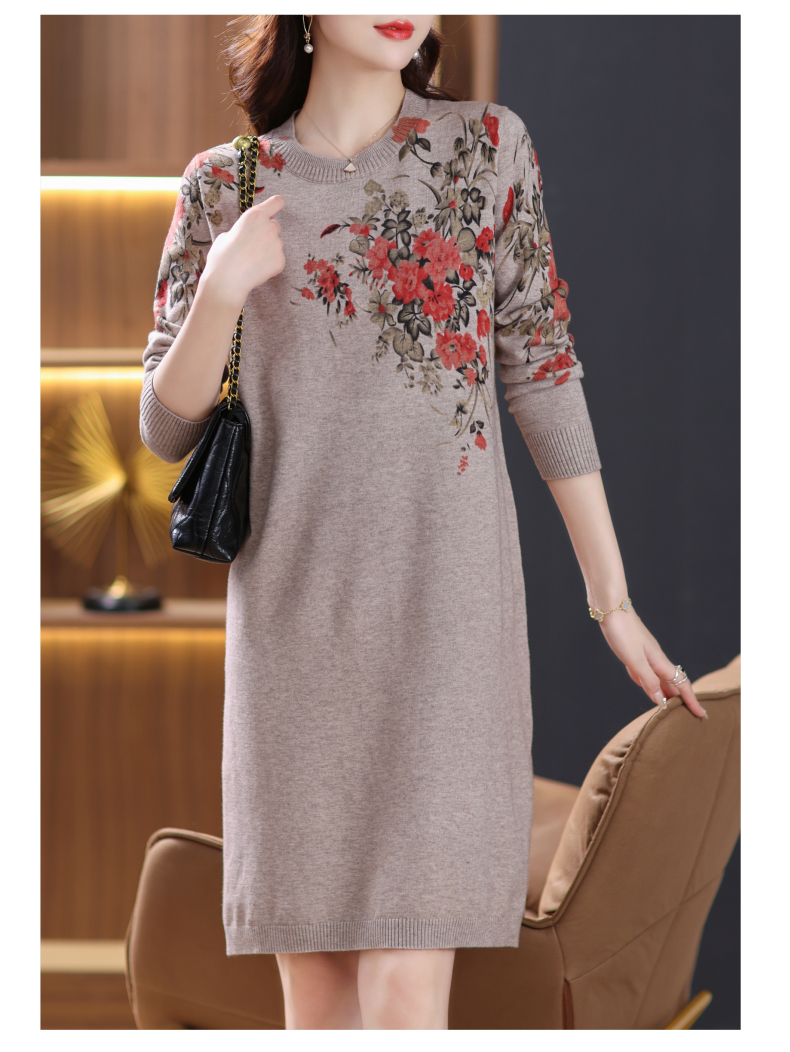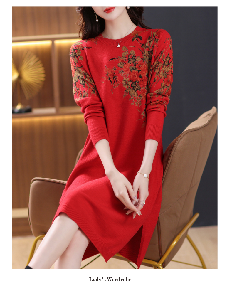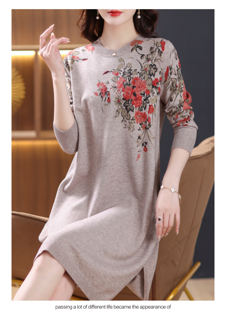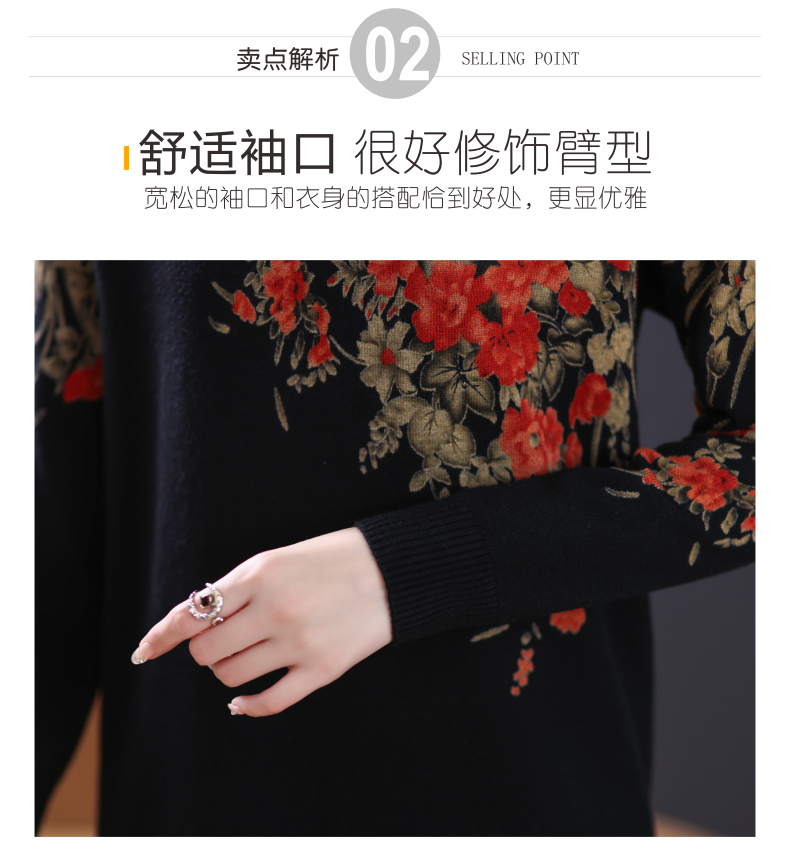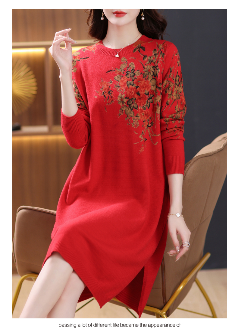 配大衣的印花毛衣连衣裙子圆领打底群加厚CC-38-8811