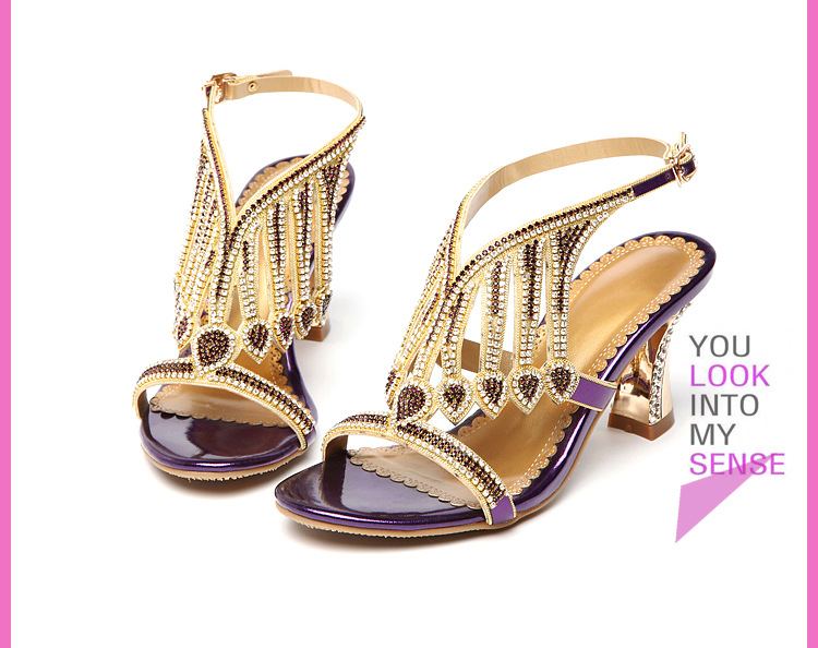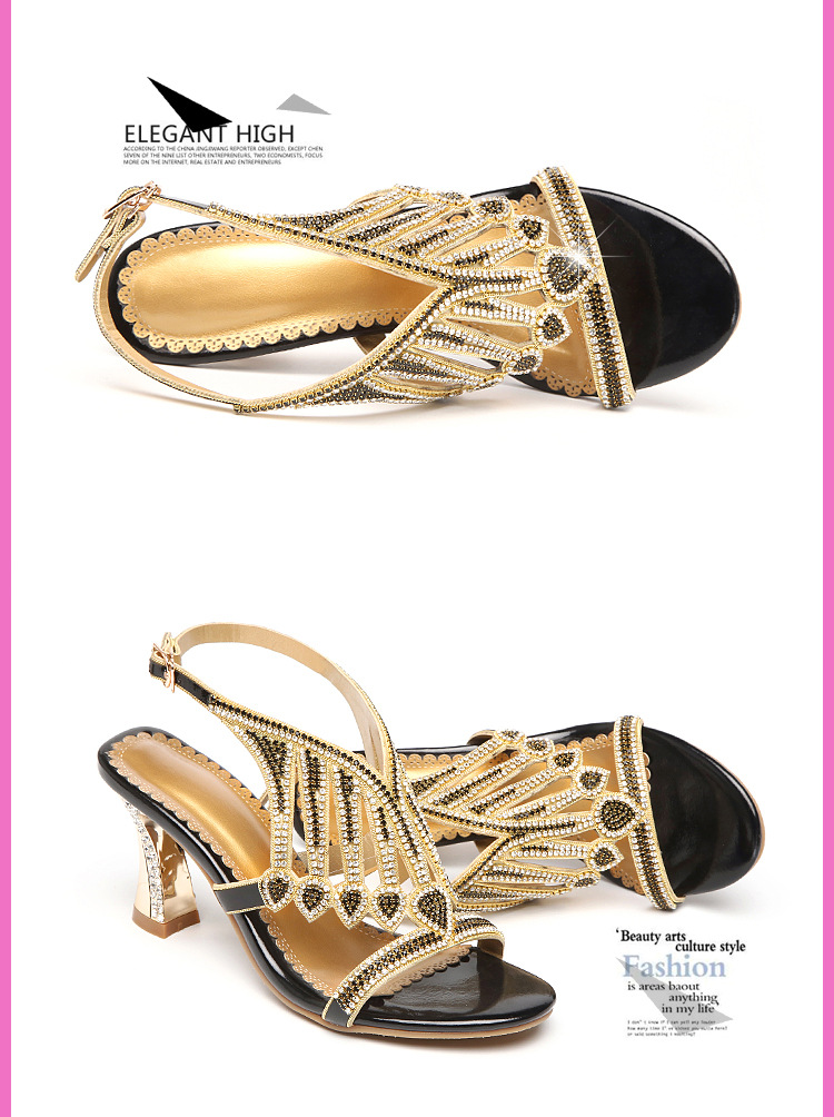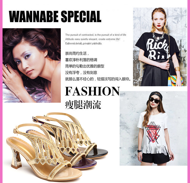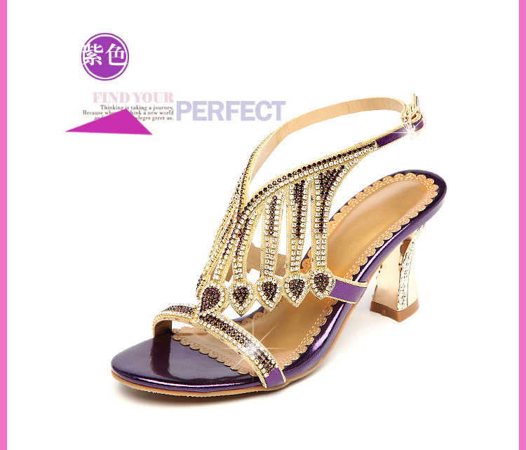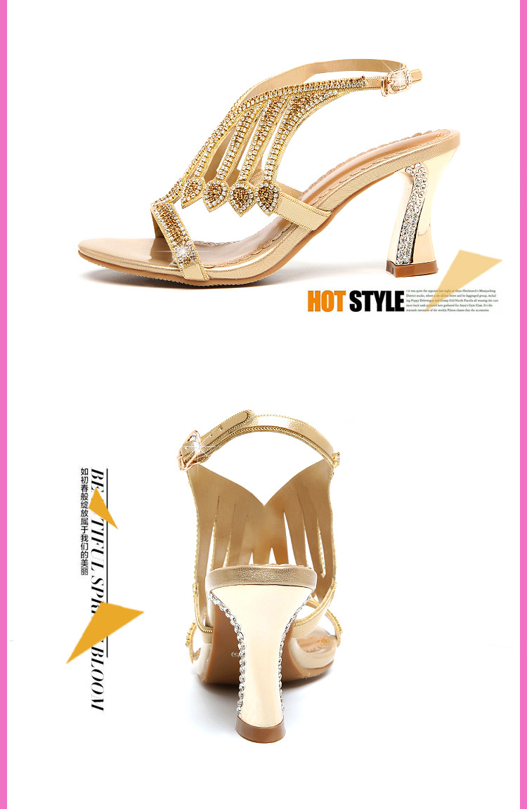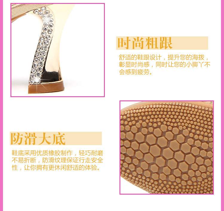 时尚水钻中跟镶钻凉鞋,高跟鞋性感韩版粗跟鞋LX987