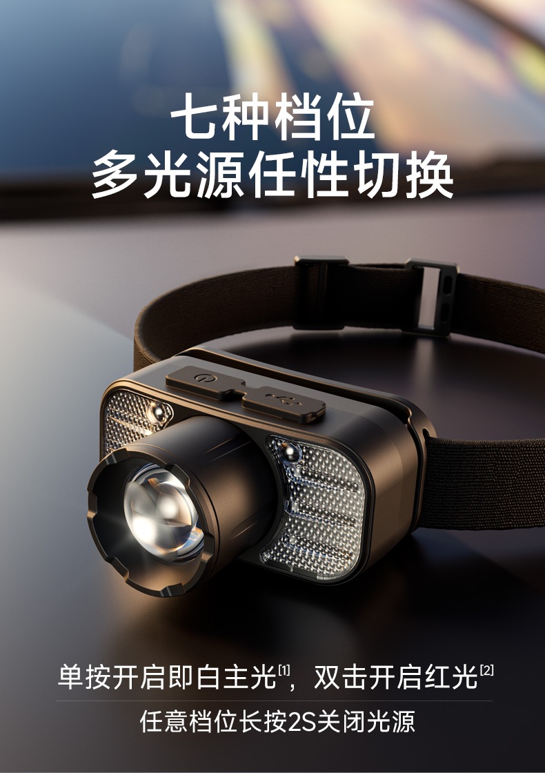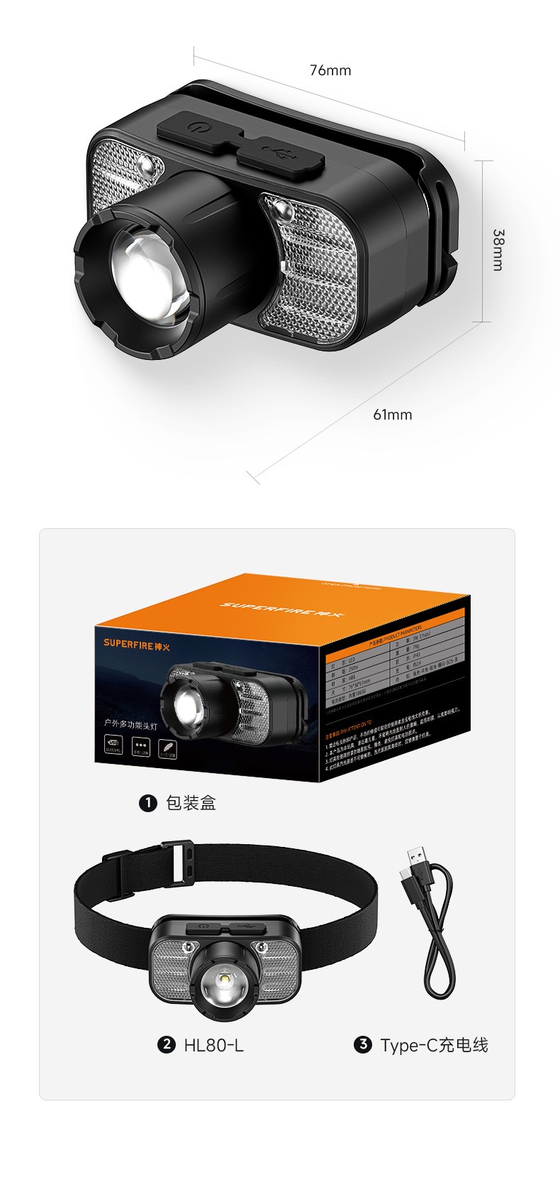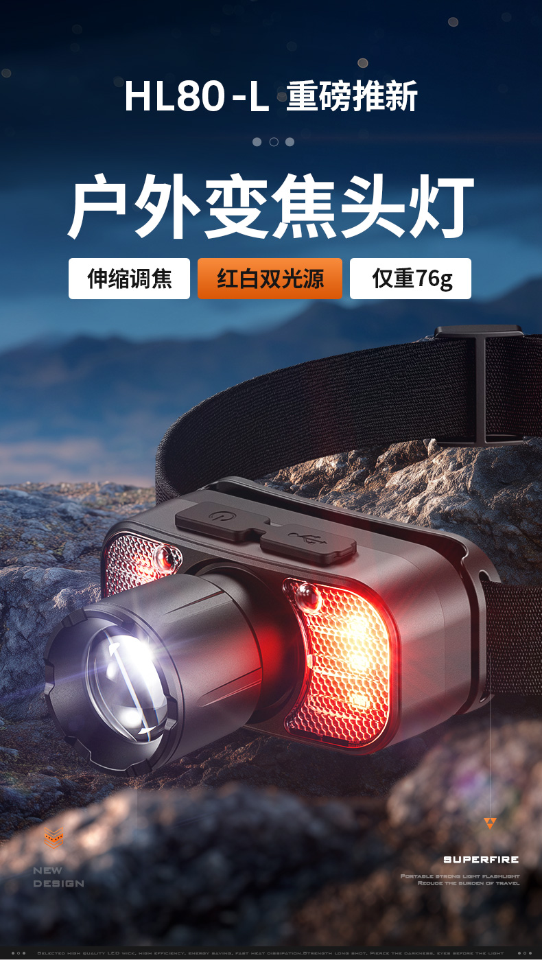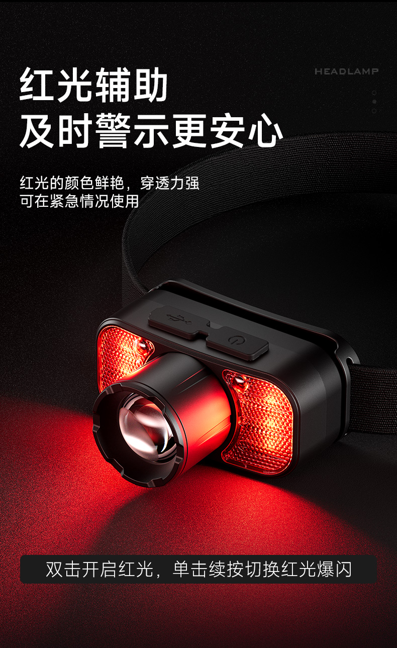 神火强光头灯HL80-L红白双光源充电高亮伸缩调焦远射高亮户外必备