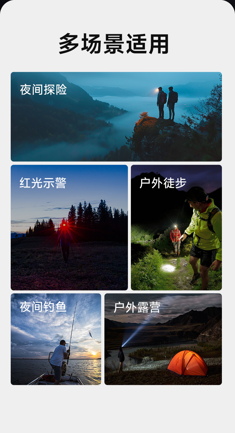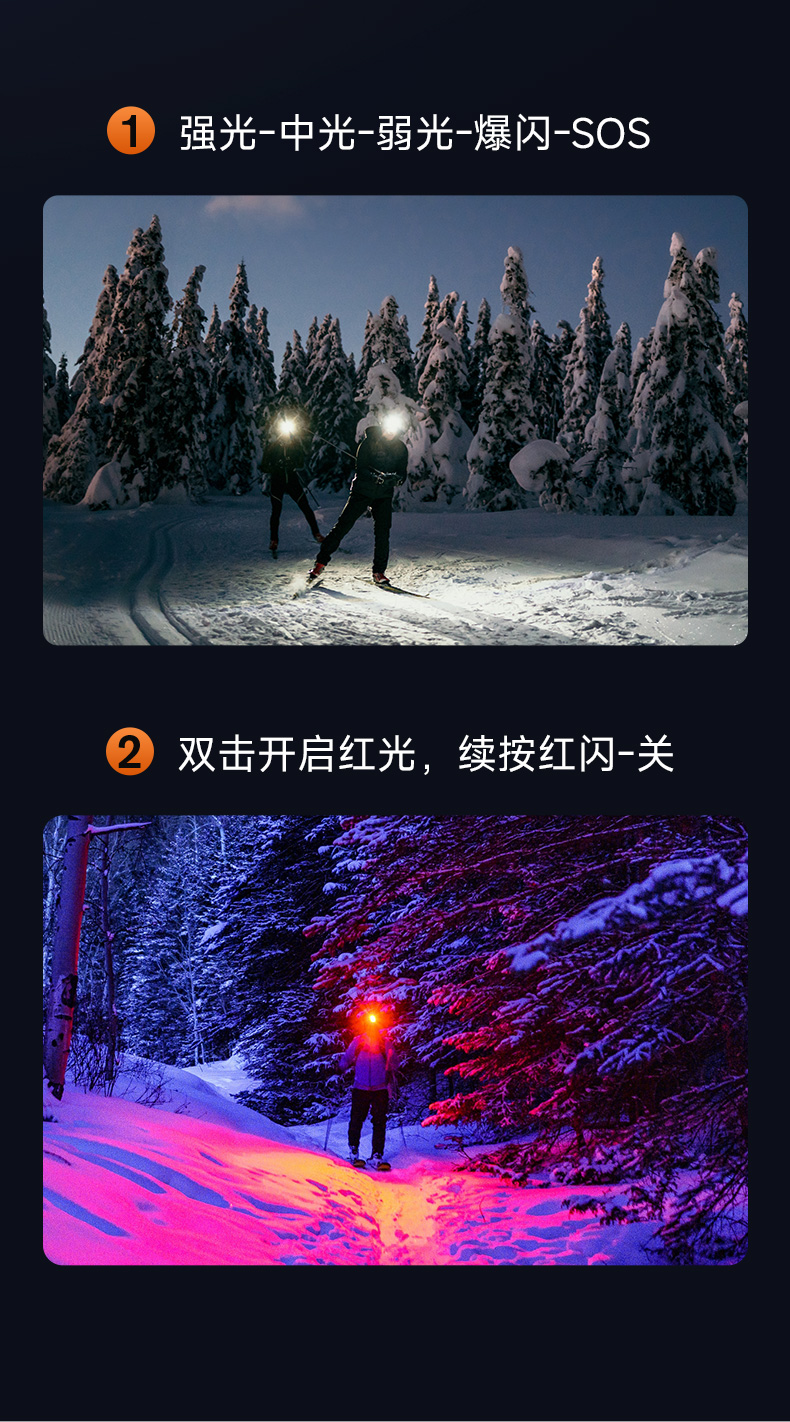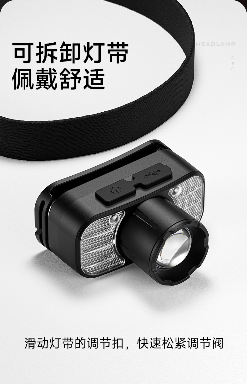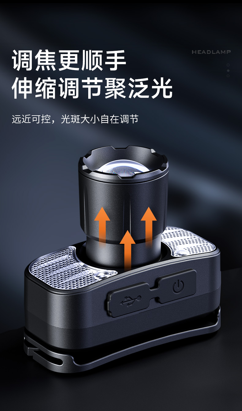 神火强光头灯HL80-L红白双光源充电高亮伸缩调焦远射高亮户外必备