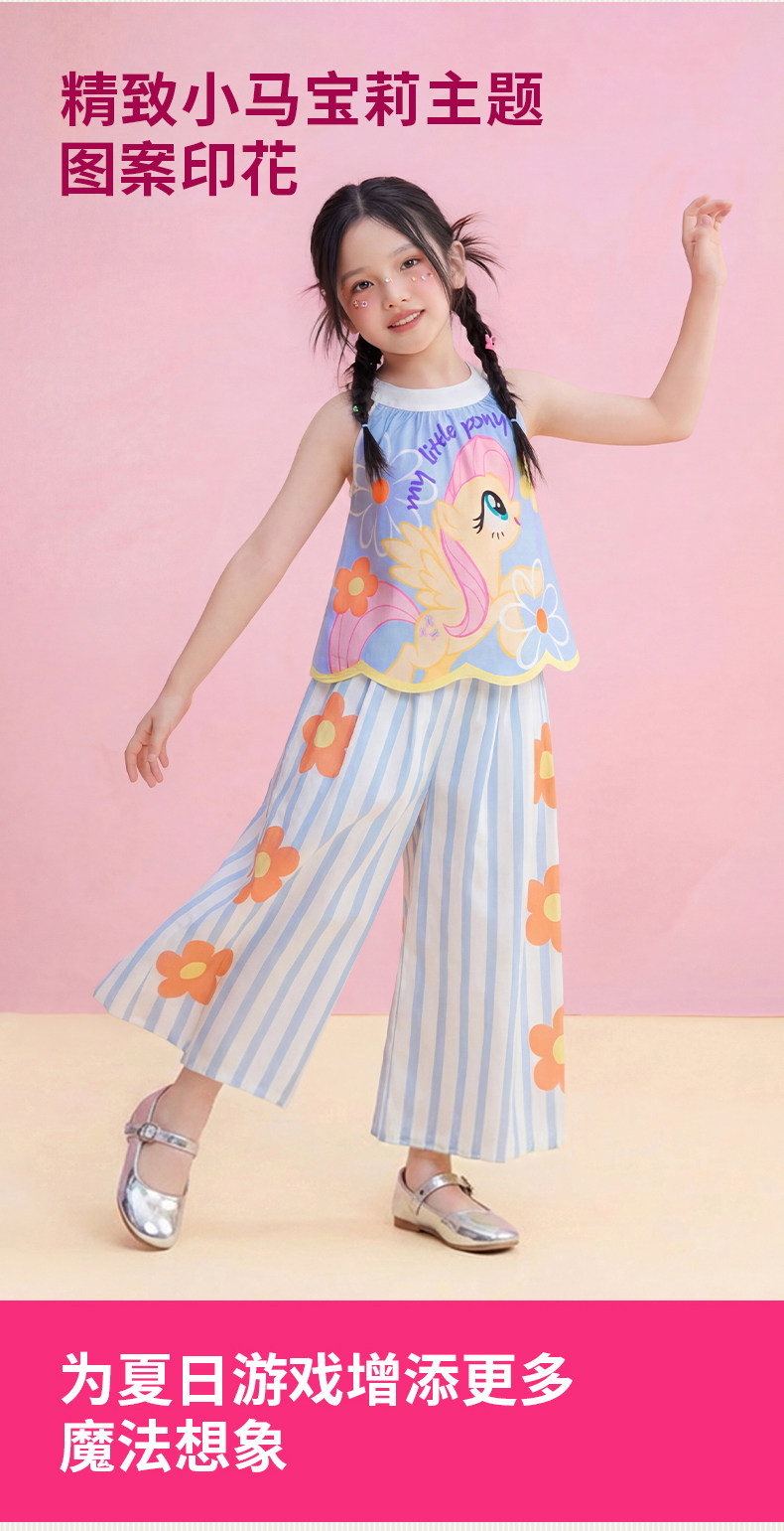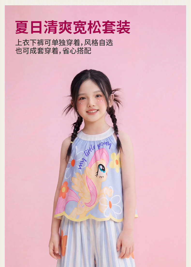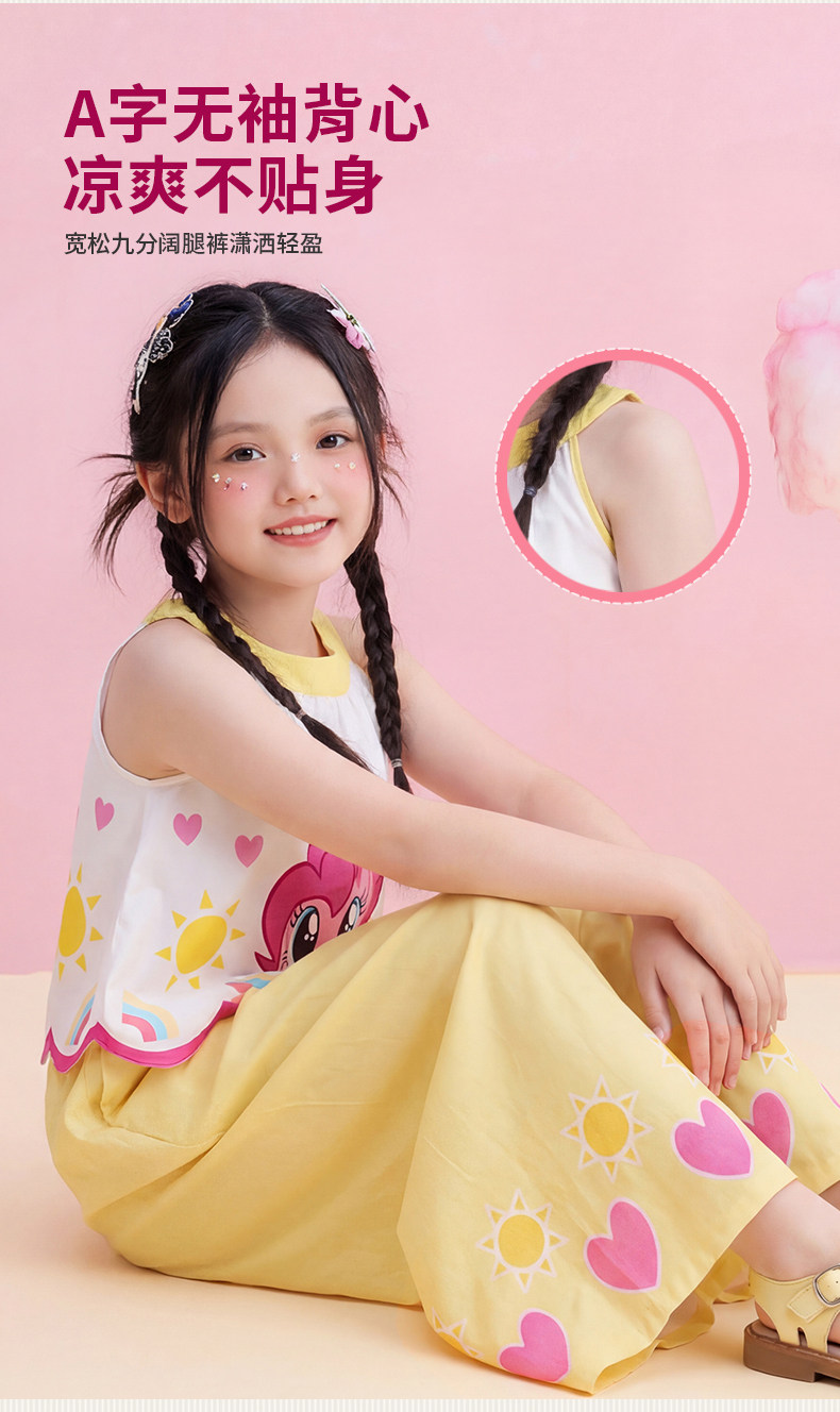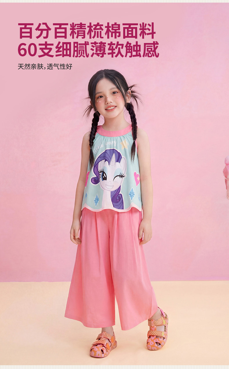 小马宝莉联名年衣童装套装女童夏季新款可爱卡通背心吊带长裤套装