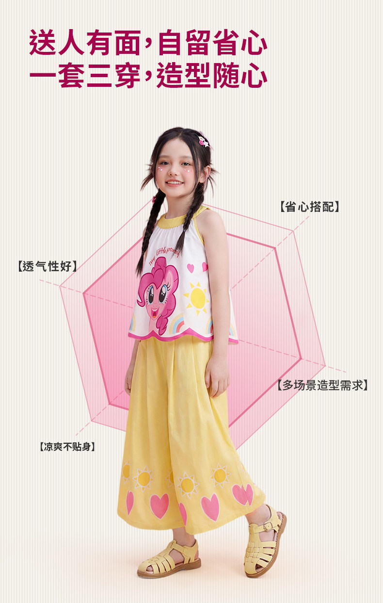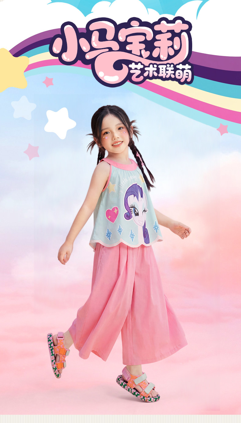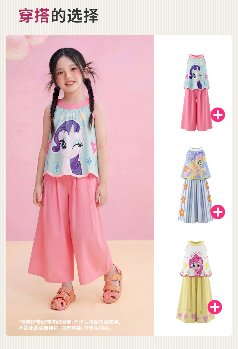 小马宝莉联名年衣童装套装女童夏季新款可爱卡通背心吊带长裤套装