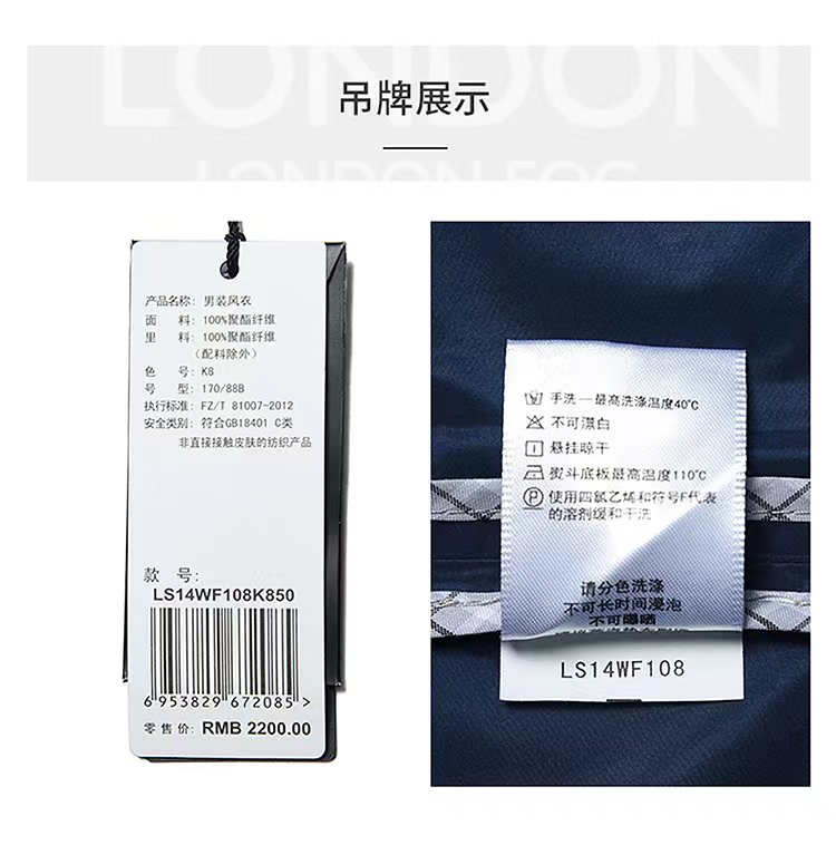 【直发】伦敦雾 聚酯纤维面料 时尚英伦风-LS14WF108
