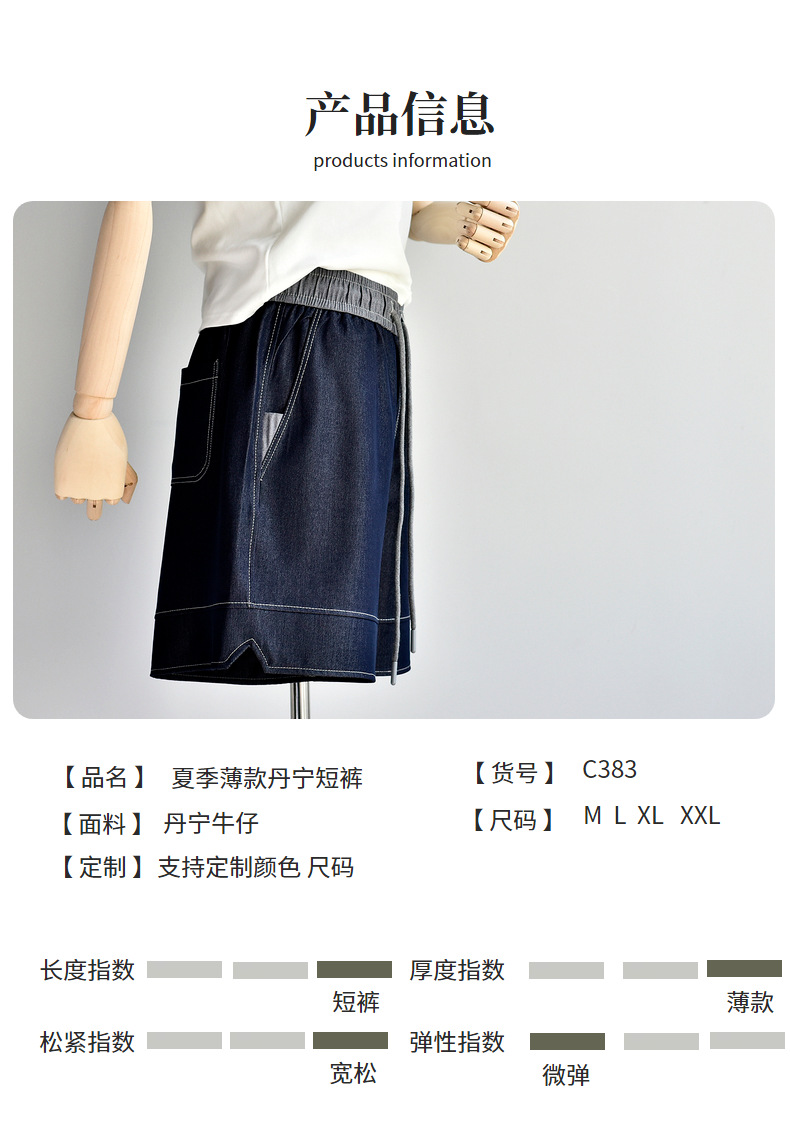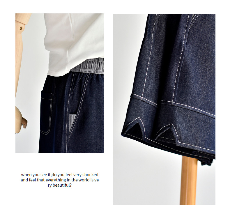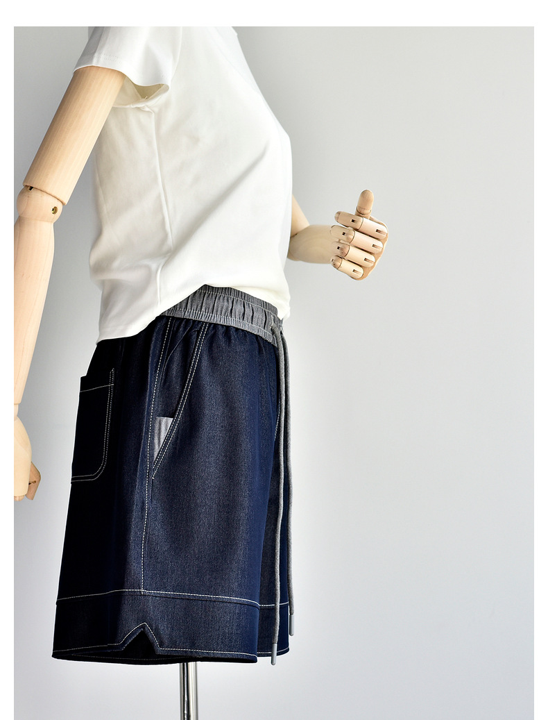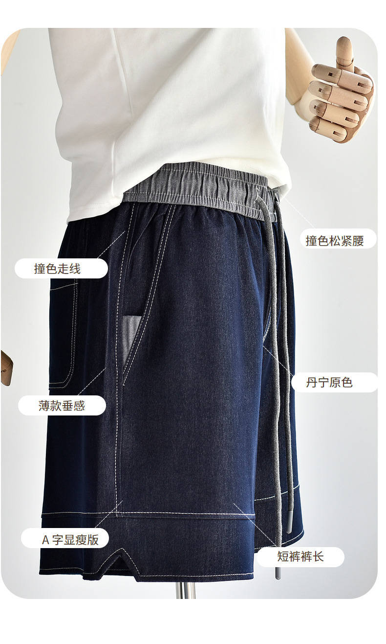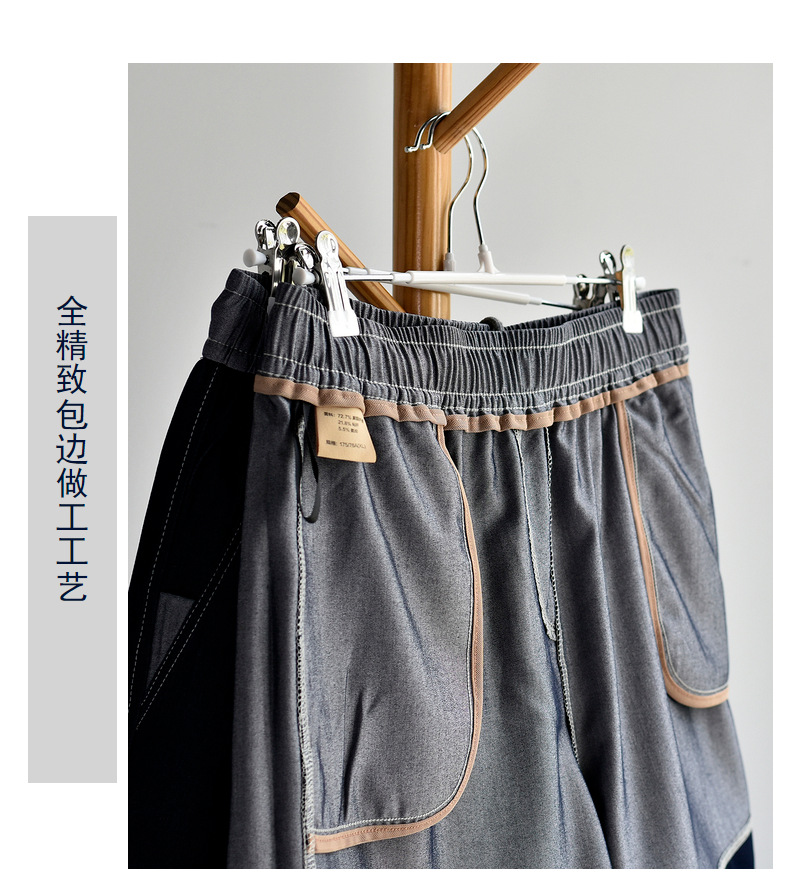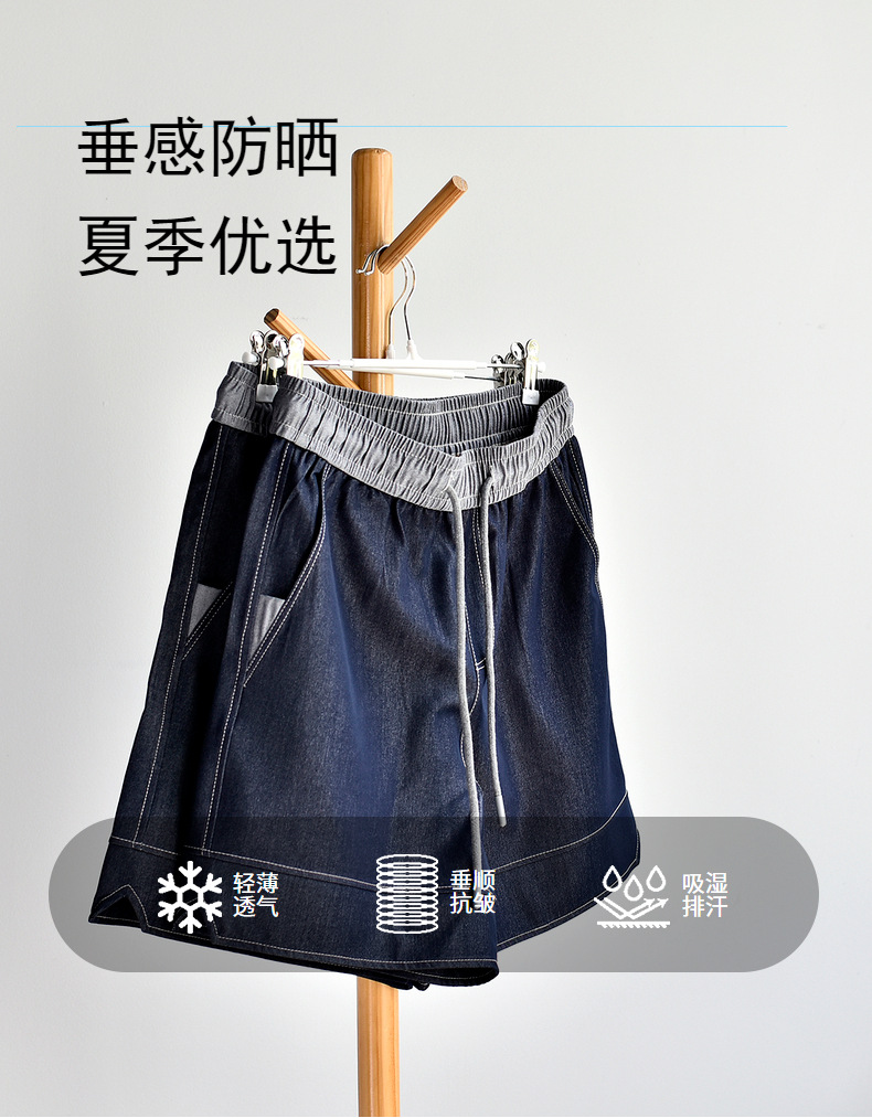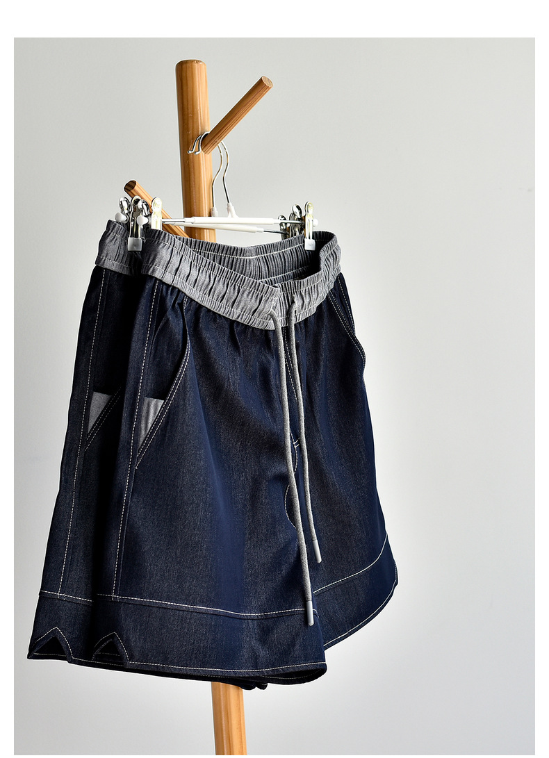 【大牌丹宁短裤】夏季女装丹宁牛仔原色撞色A 字短裤