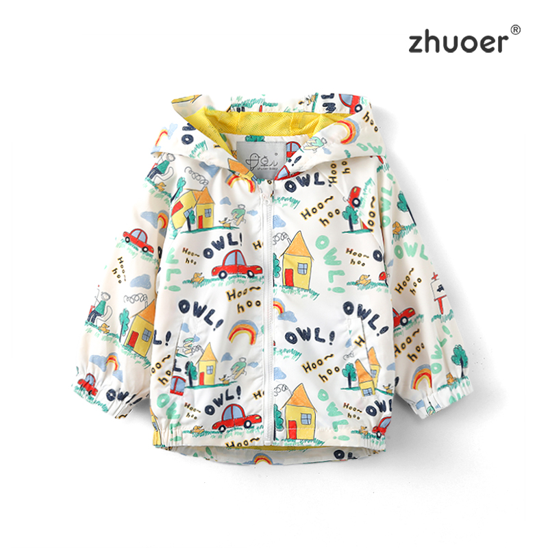 【春款风衣】卓儿男小童休闲运动连帽风衣外套印花上衣防晒服适合1.5-6岁