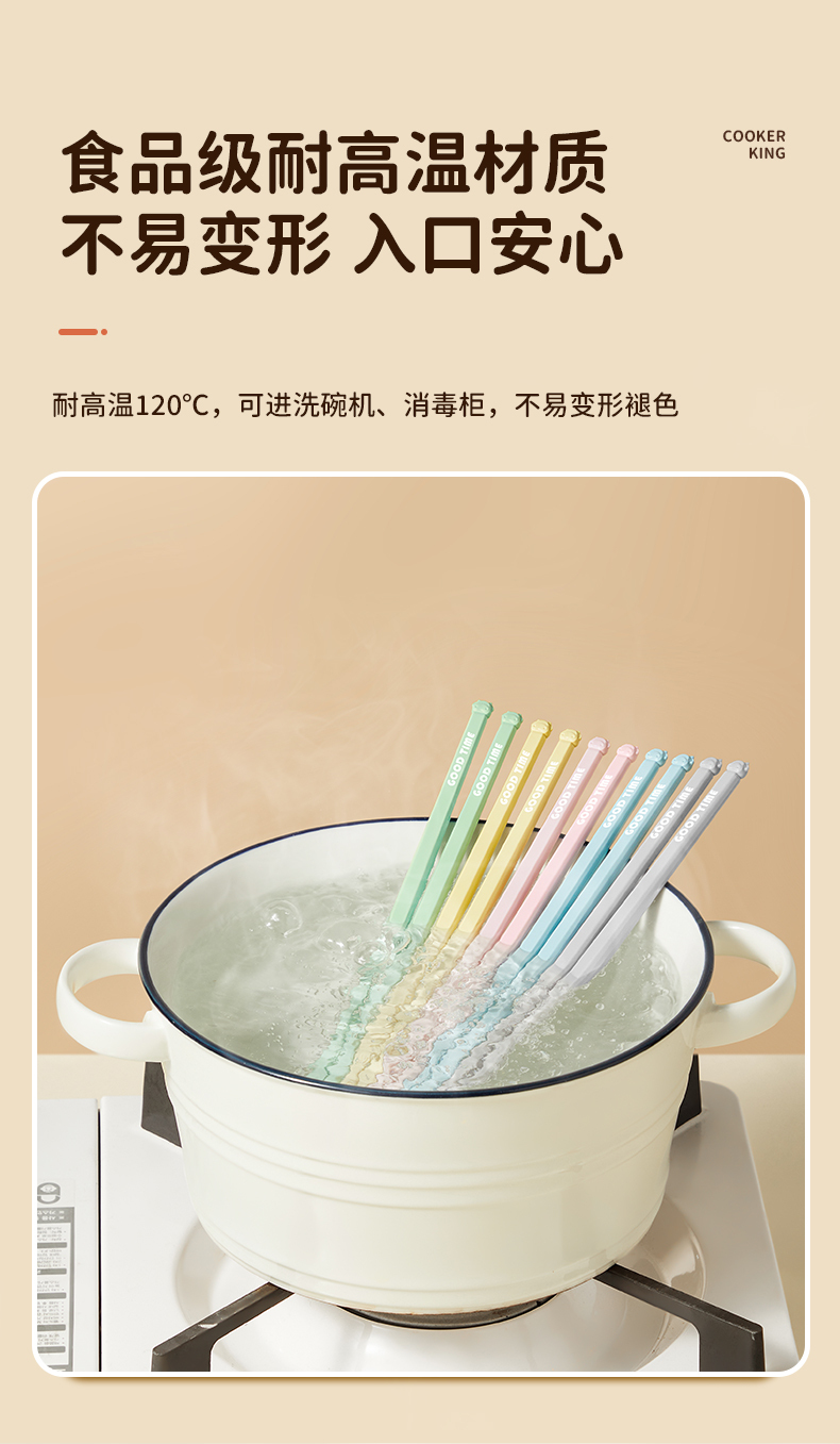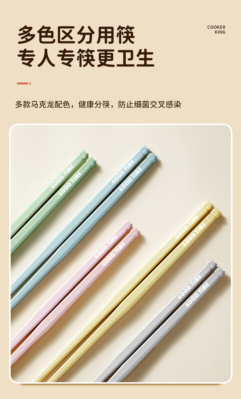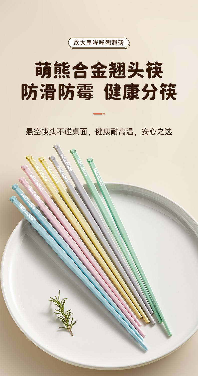 炊大皇悬浮合金筷子家用高档防霉可爱2024新款一人一筷家庭5双装