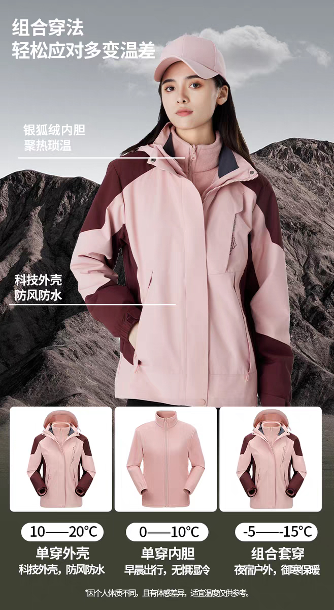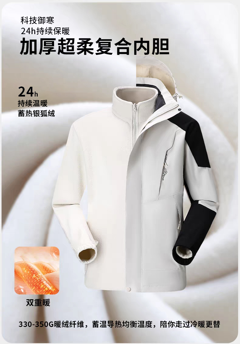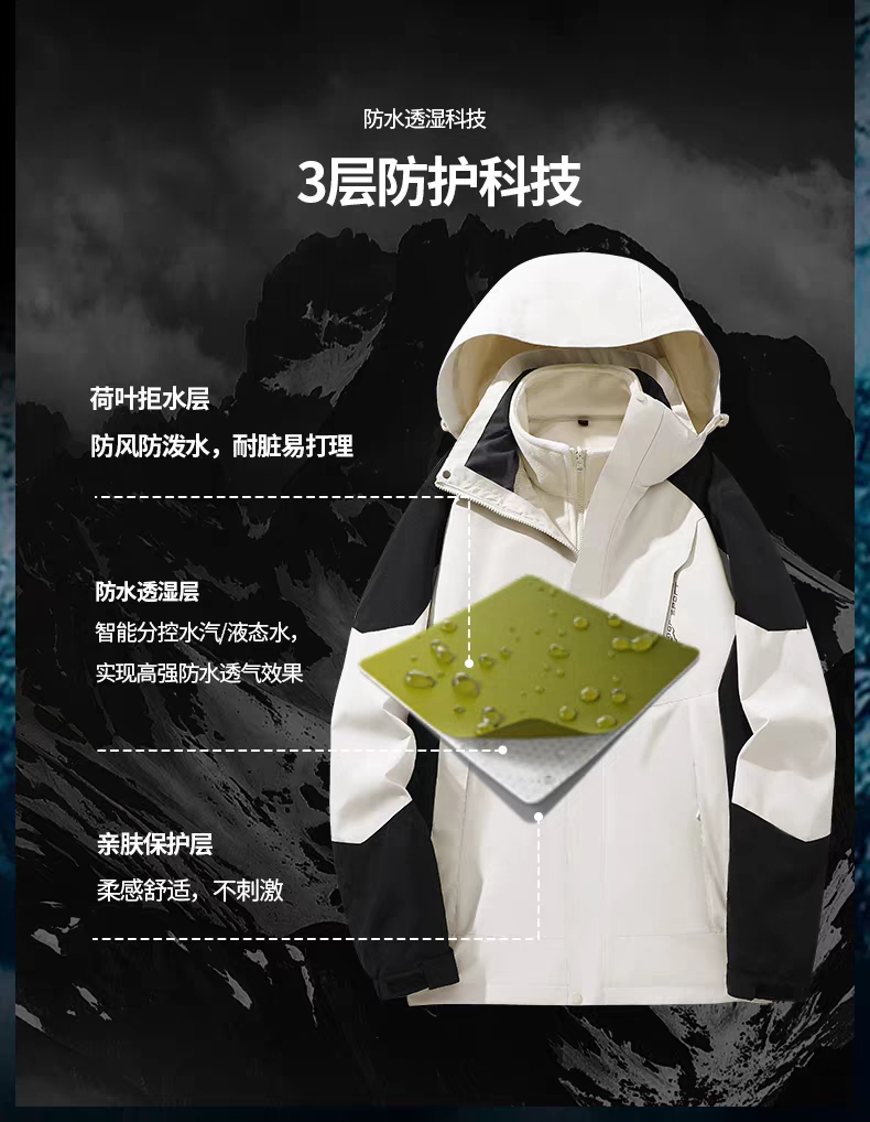 【官旗同款,热销30w+】啄木鸟TUCANO 户外三防冲锋夹克 男女款秋冬季三合一可拆卸加绒加厚徒步保暖外套