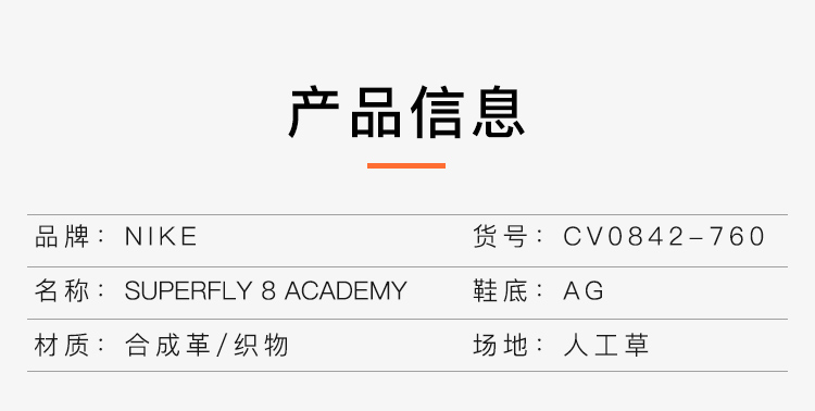 NIKE/耐克 Nike Mercurial Superfly 8 Academy AG 刺客14中端高帮 AG足球鞋CV0842760