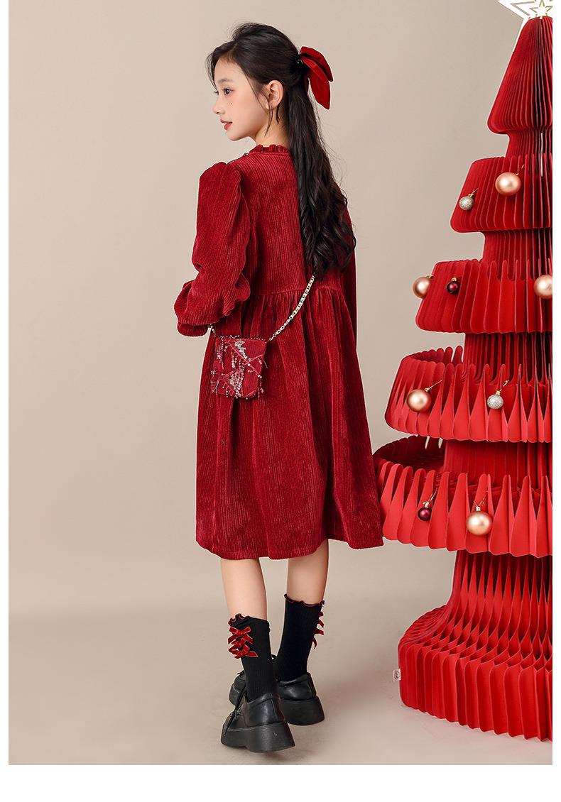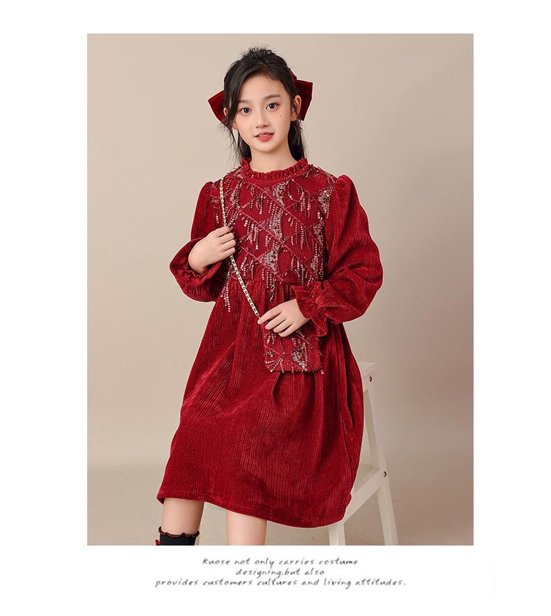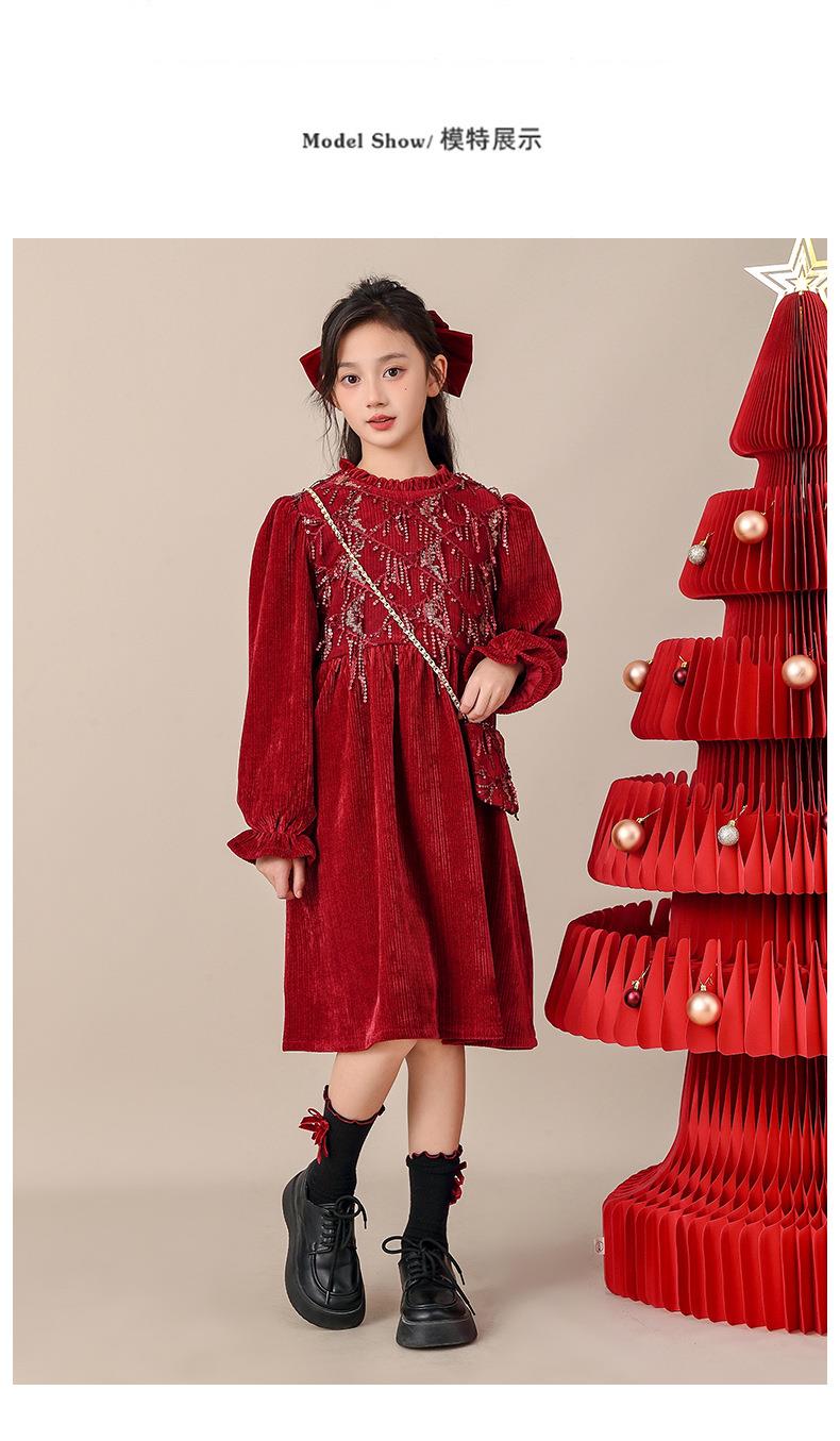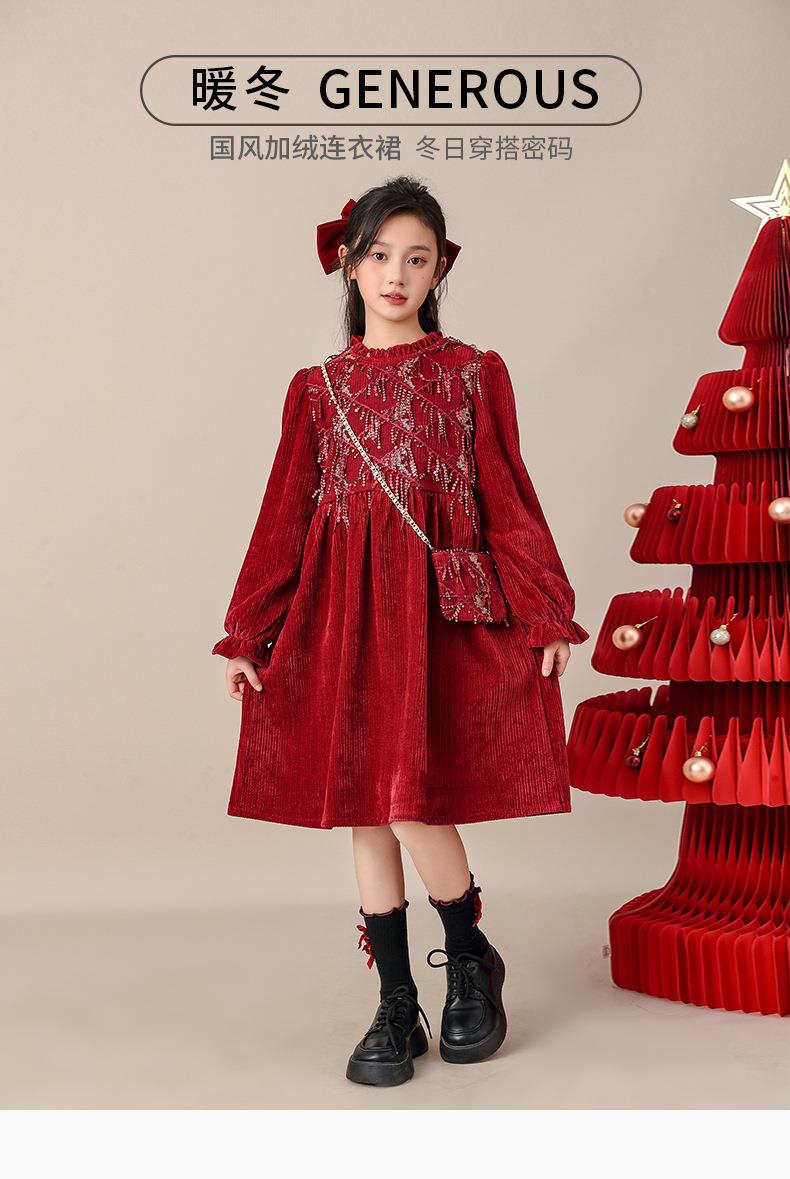 2025新款女童连衣裙流苏亮片冬装红色中大童拜年服公主裙儿童裙子