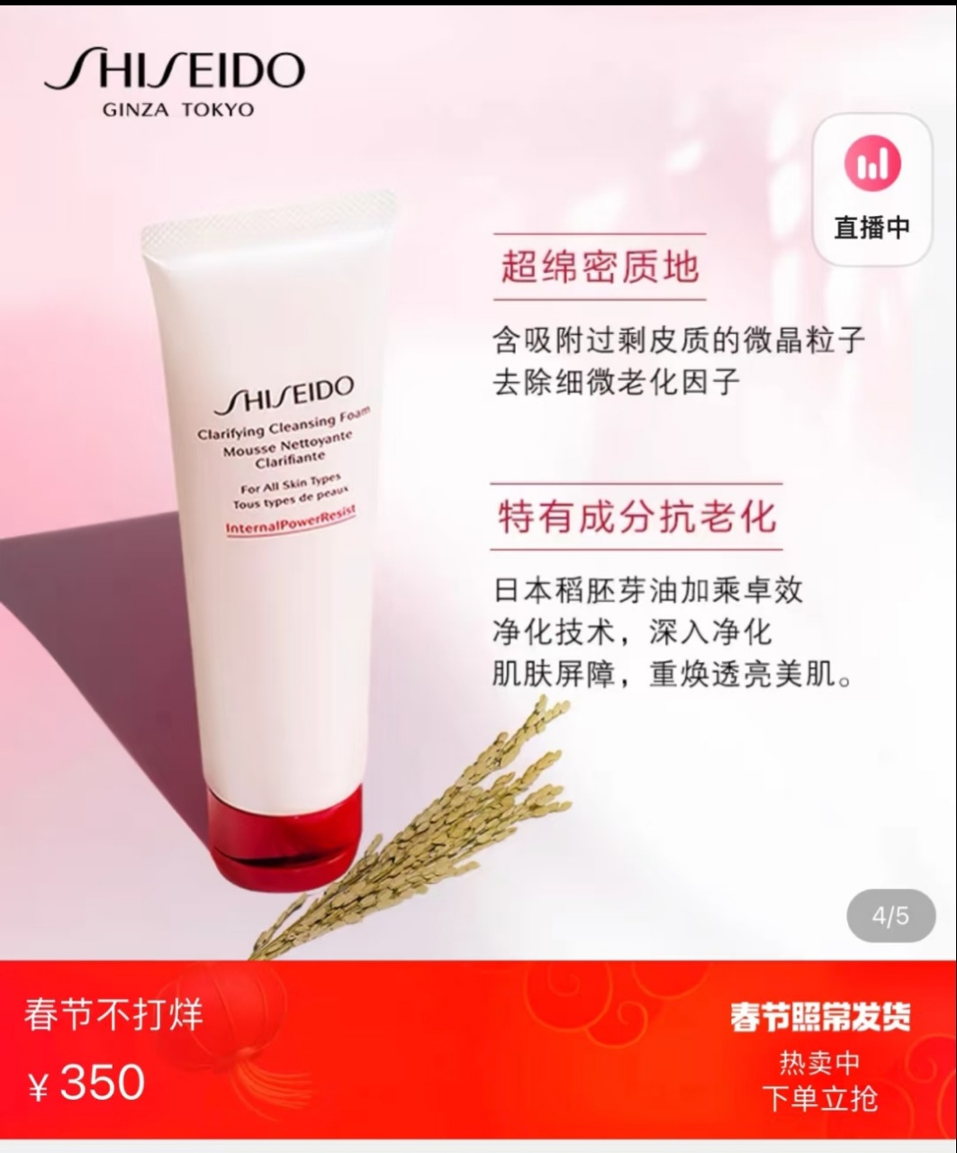[透小蜜心选]【活动价 ¥ 49.9】资生堂肌活焕采洁面膏 50ml