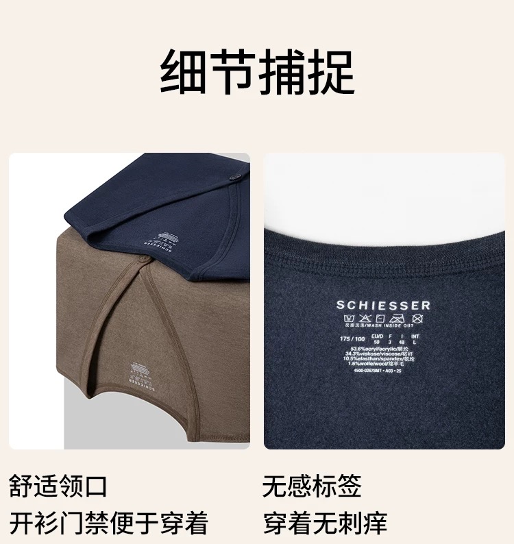 - 来自德国的SCHIESSER舒雅,专注做内衣一百四十余年,不遗余力的材料创新,因材而异的专业剪裁,健康环保的加工技术以及充满文化关注的时尚主题,做你认识之外的舒适内衣。