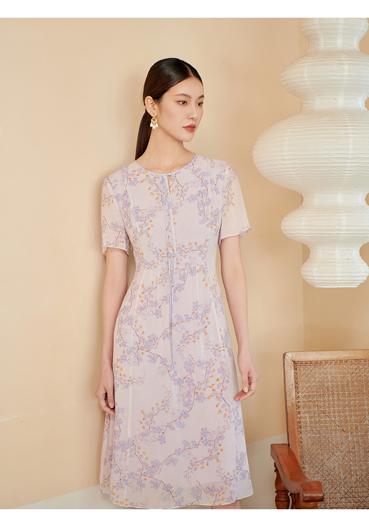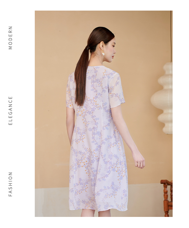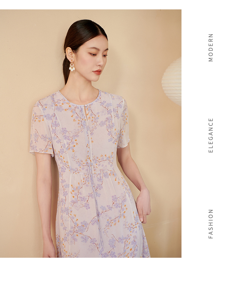 佐尔美夏季新款新中式国风时尚气质桑蚕丝连衣裙女M42LS49