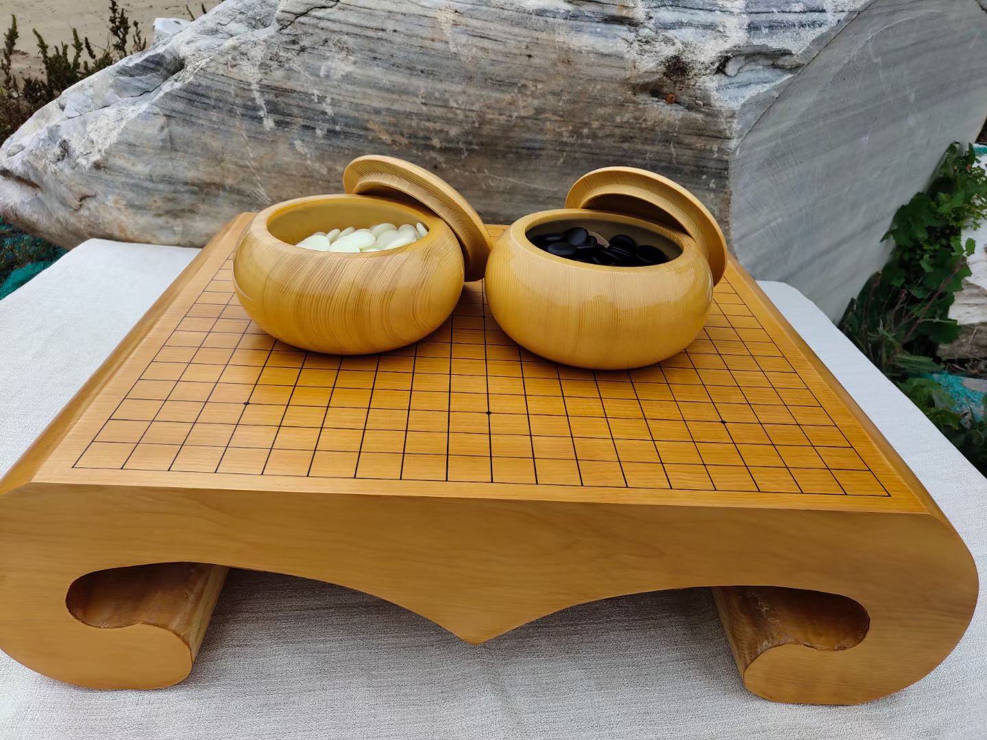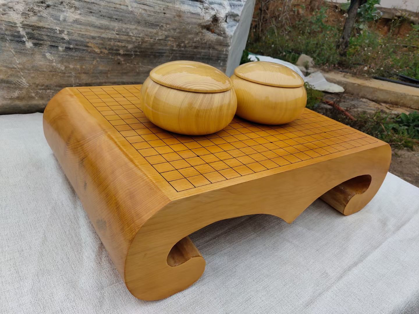 古典本榧独木棋墩+本榧罐+精品老云子