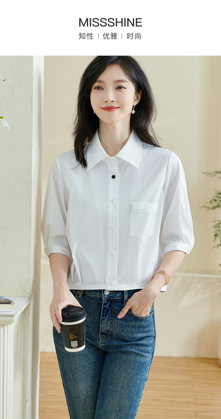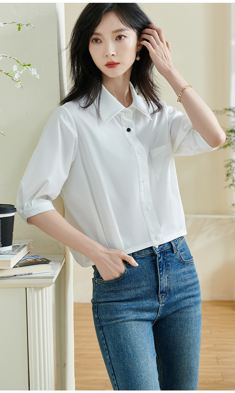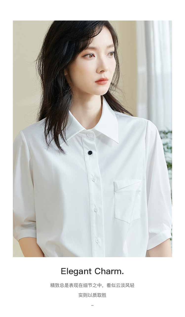 【白色纯棉衬衫】2026春季时尚简约纯色休闲百搭长袖衬衣