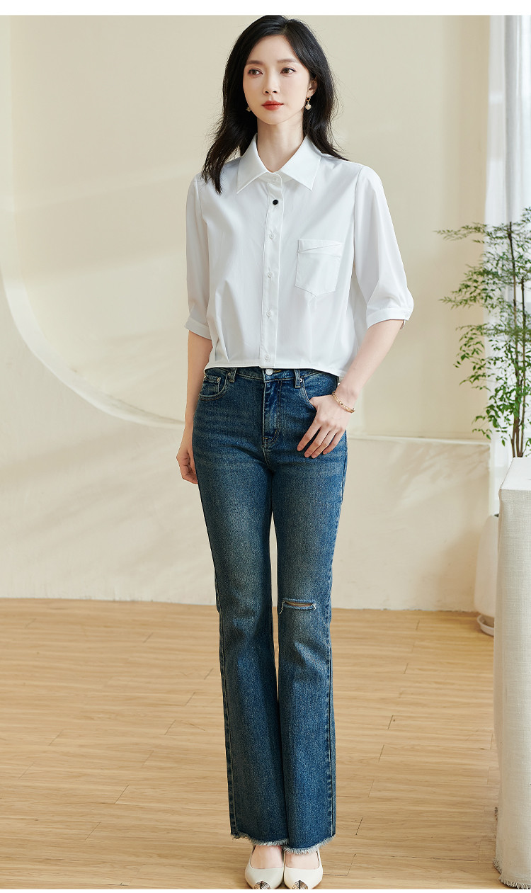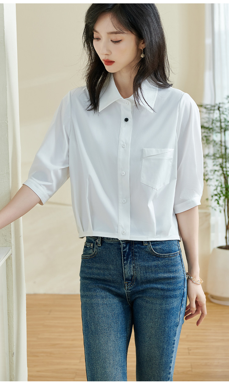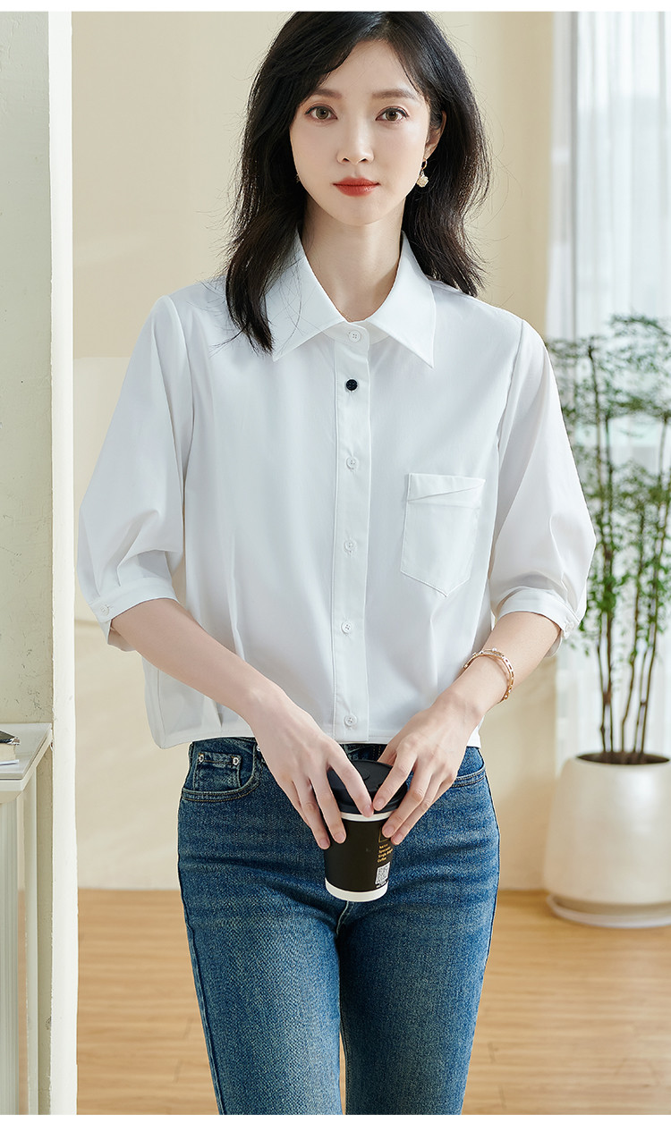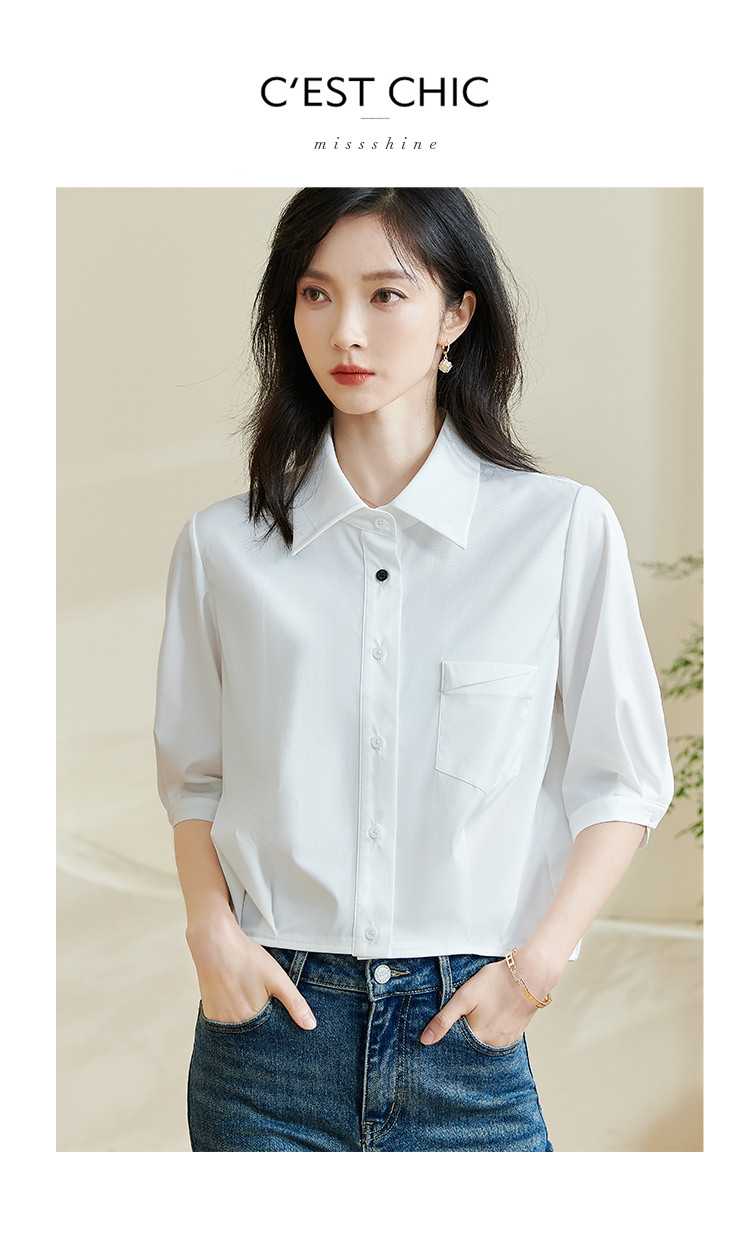 【白色纯棉衬衫】2026春季时尚简约纯色休闲百搭长袖衬衣