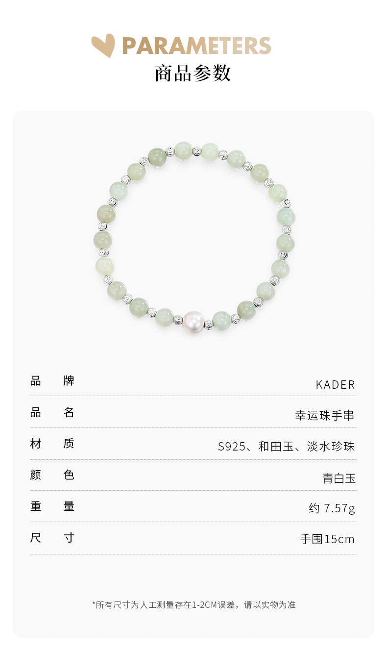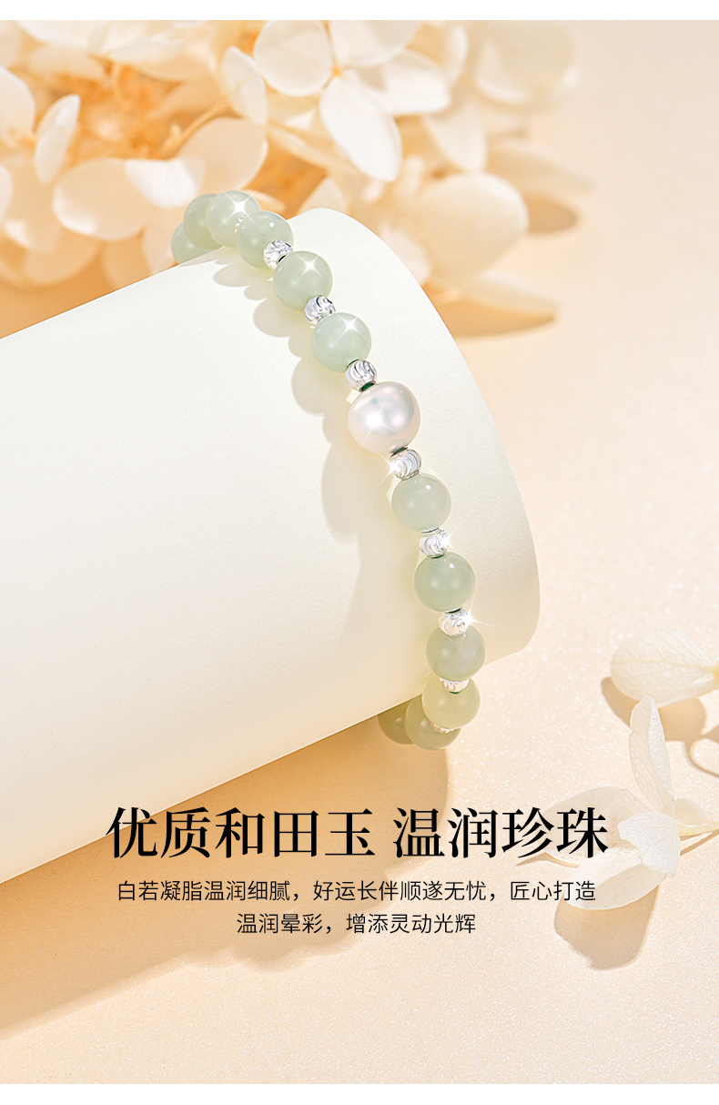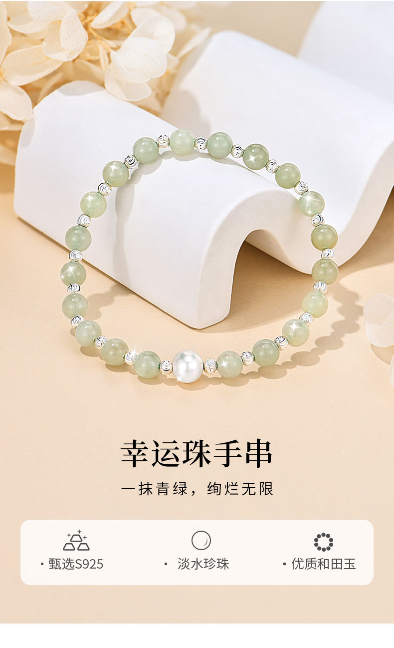 KADER卡蒂罗 幸运珠手串 S925和田玉新中式国潮风清新设计配饰 优雅大气气质款首饰灵动百搭 闺蜜款礼物礼盒装
