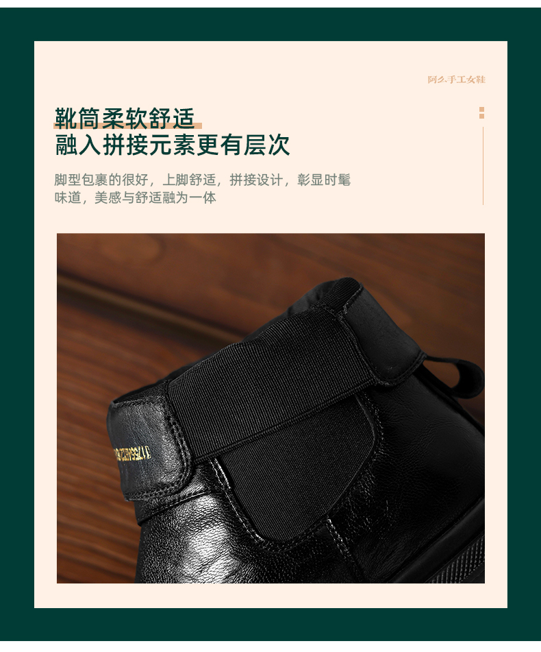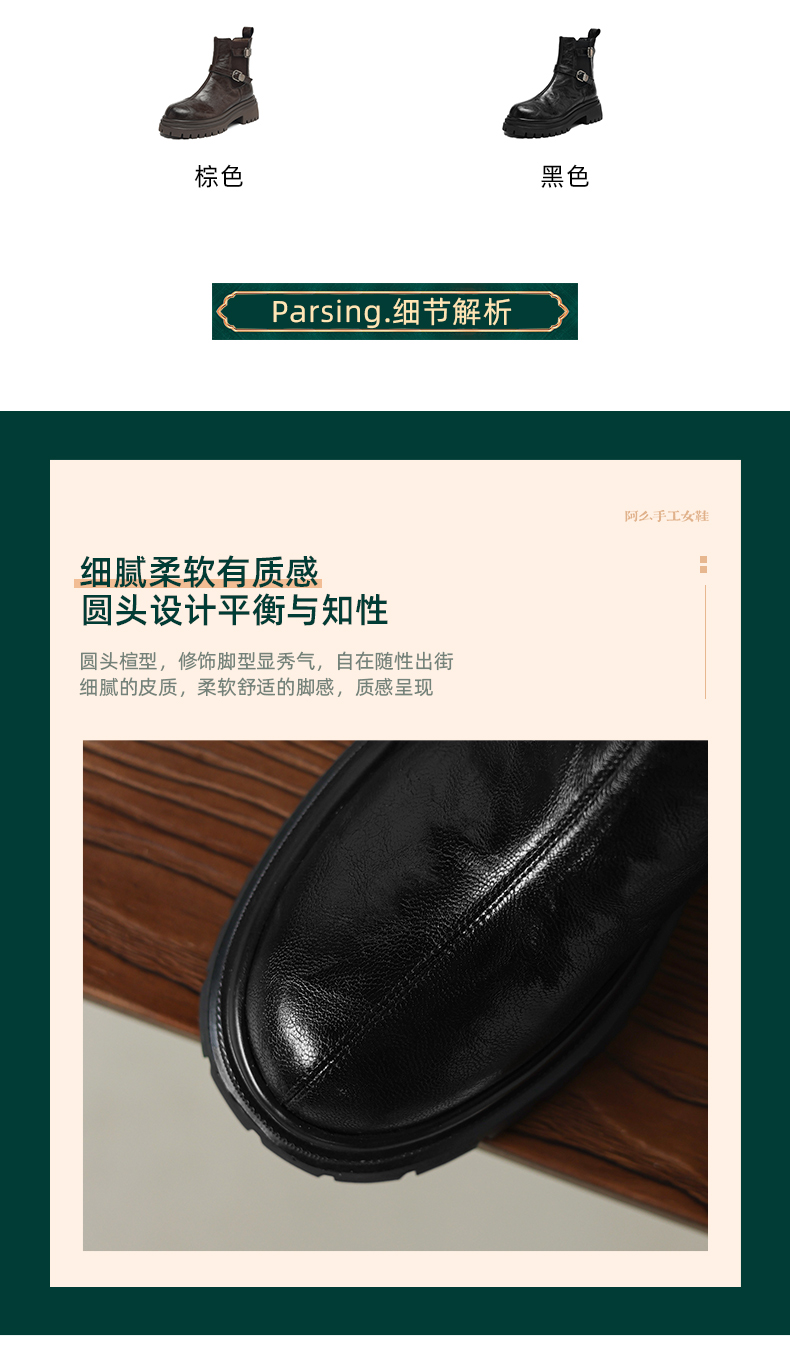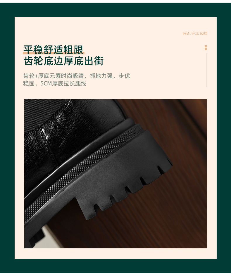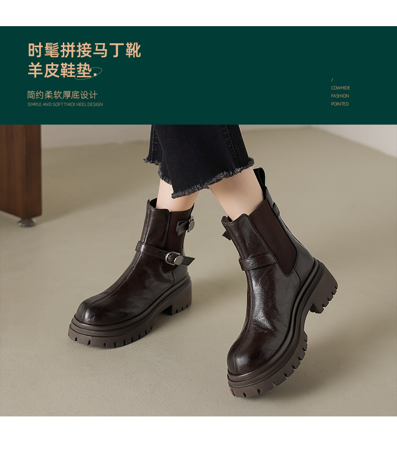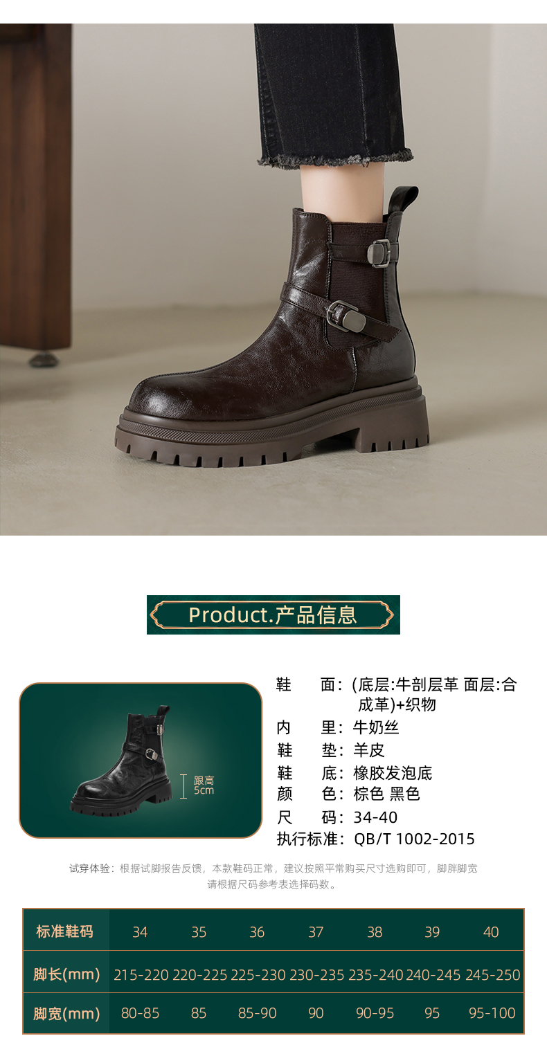 阿么手工女鞋厚底机能风秋冬短靴百搭皮带扣复古真皮切尔西靴5CM