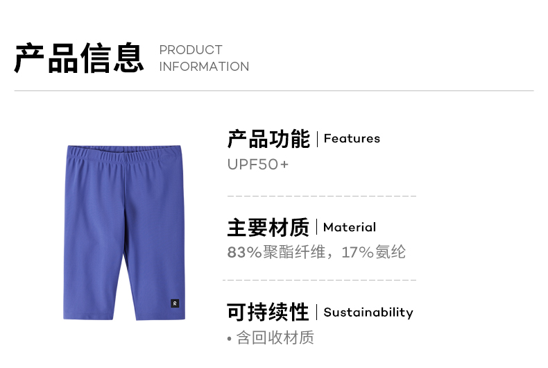 芬兰Reima2025春夏男女儿童中童防晒游泳五分短裤
