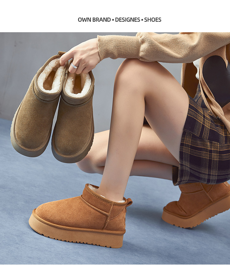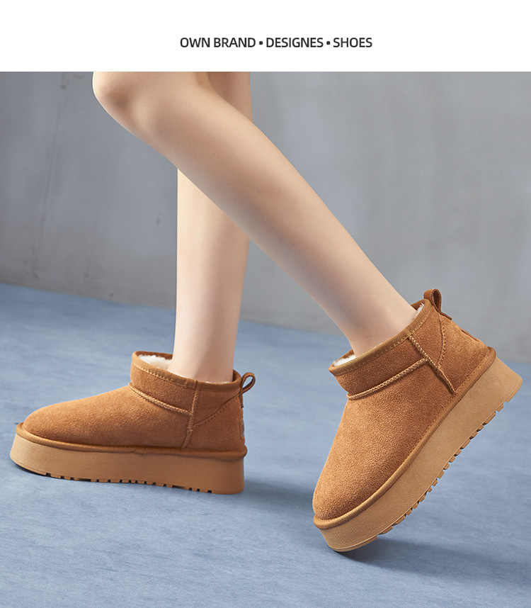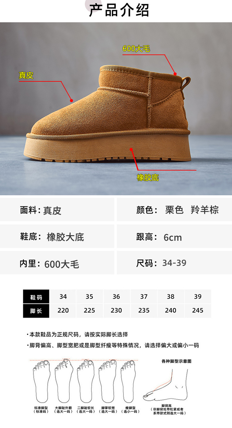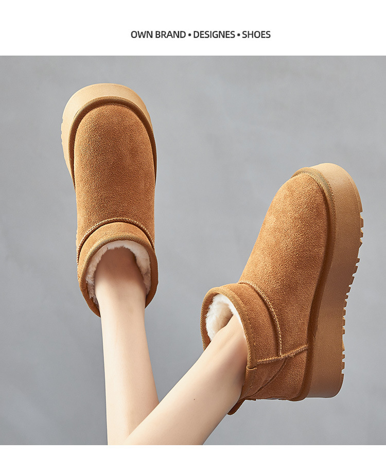 冬新款明星同款厚底雪地靴女加绒厚防水松糕短筒内增高棉鞋子