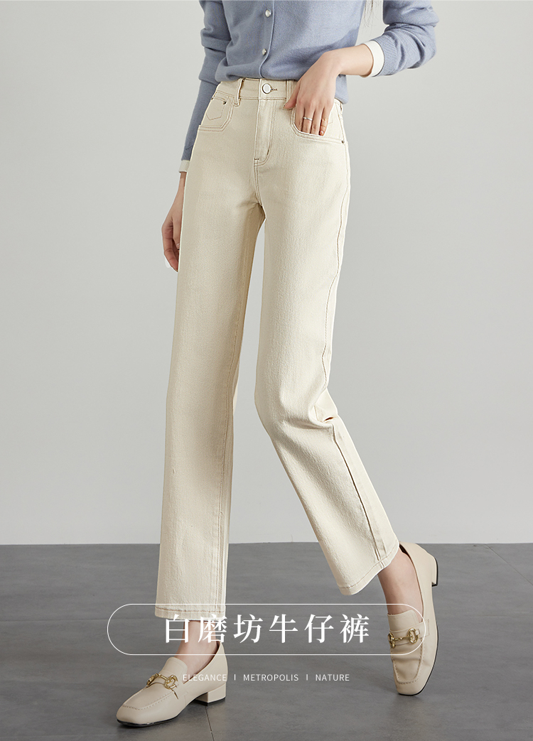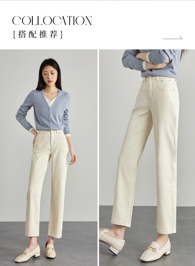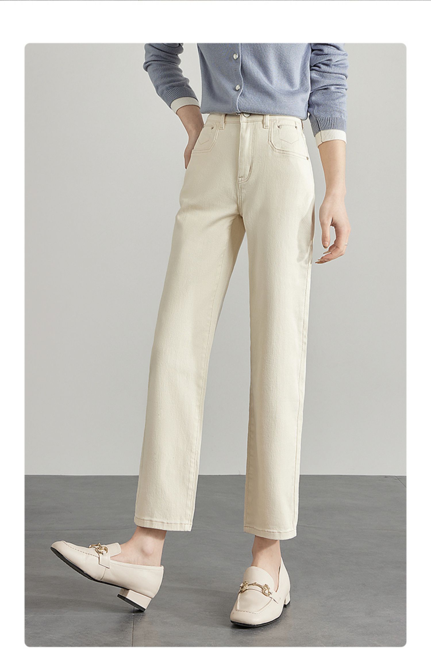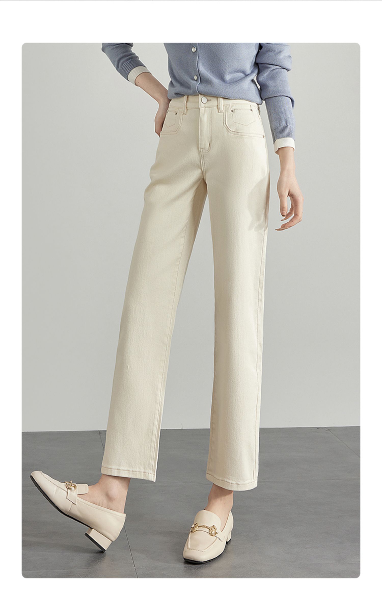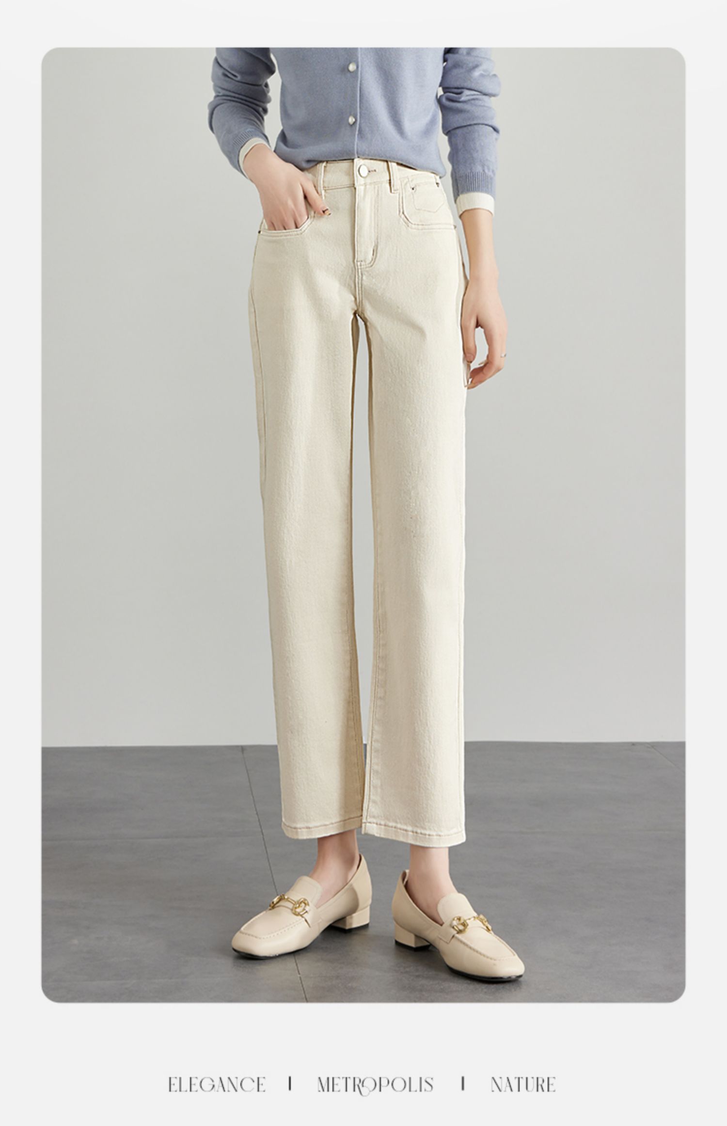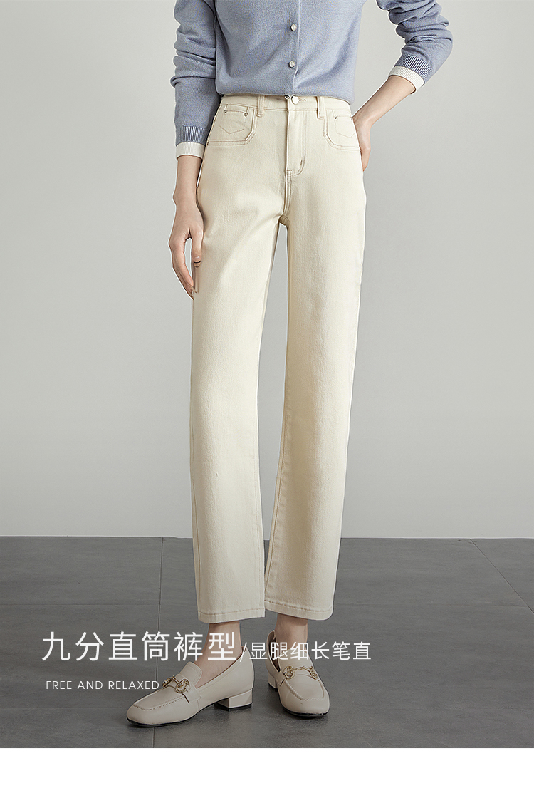 【专属特价】熙世界米白色直筒牛仔裤2025春秋新款高腰显瘦小个子九分烟管裤