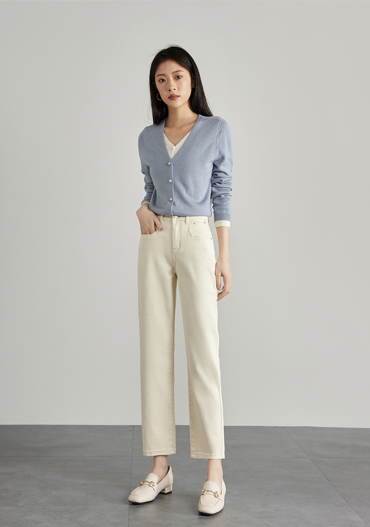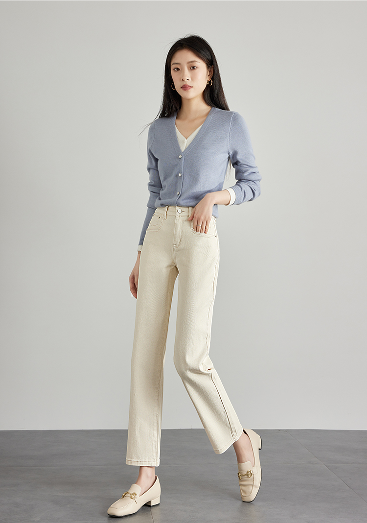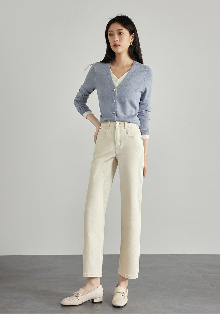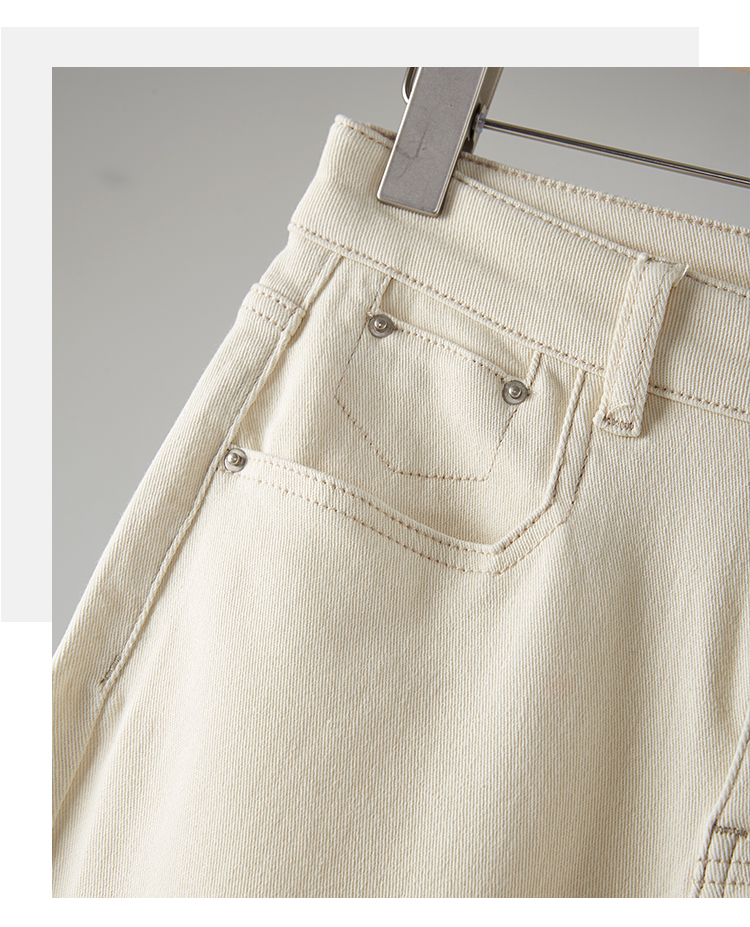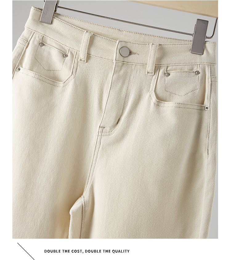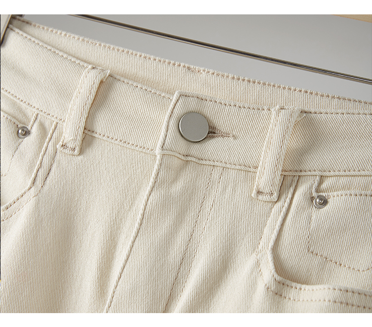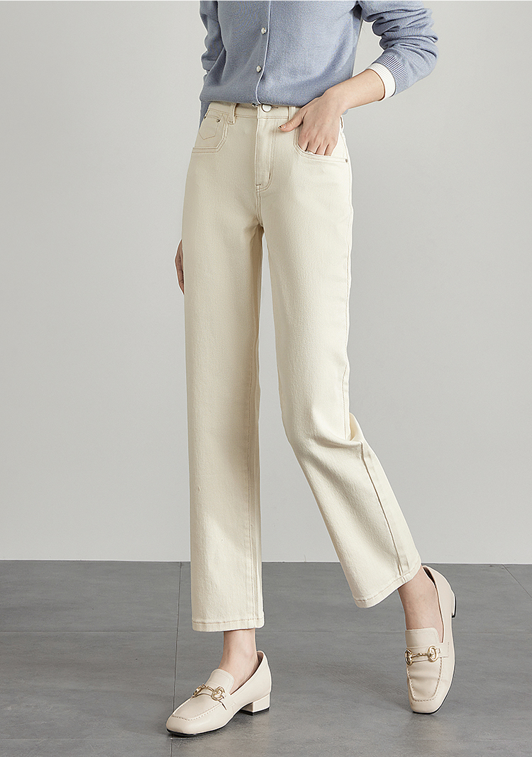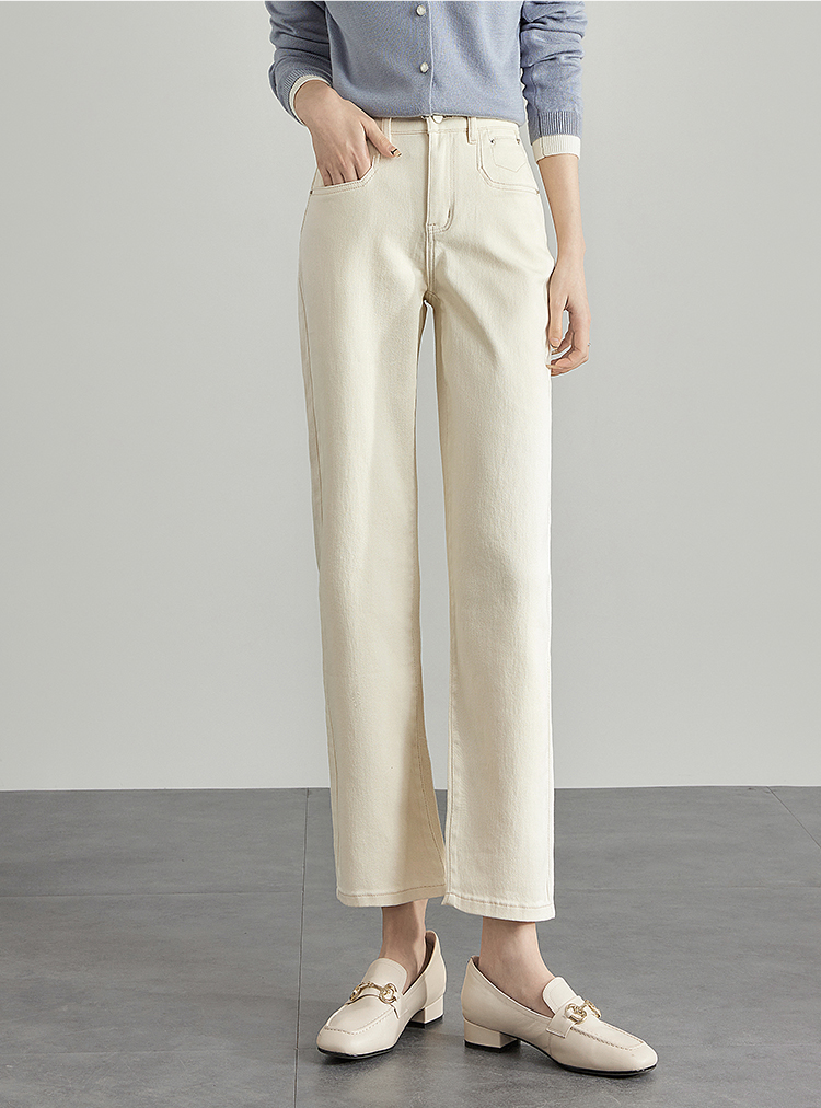 【专属特价】熙世界米白色直筒牛仔裤2025春秋新款高腰显瘦小个子九分烟管裤
