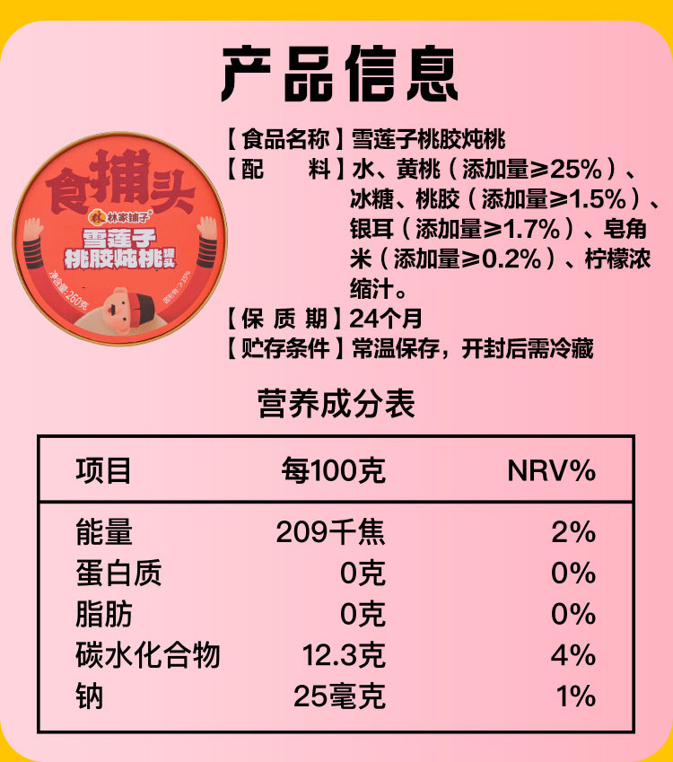 【炖品好礼】雪莲子桃胶炖桃罐头礼盒装260g*5