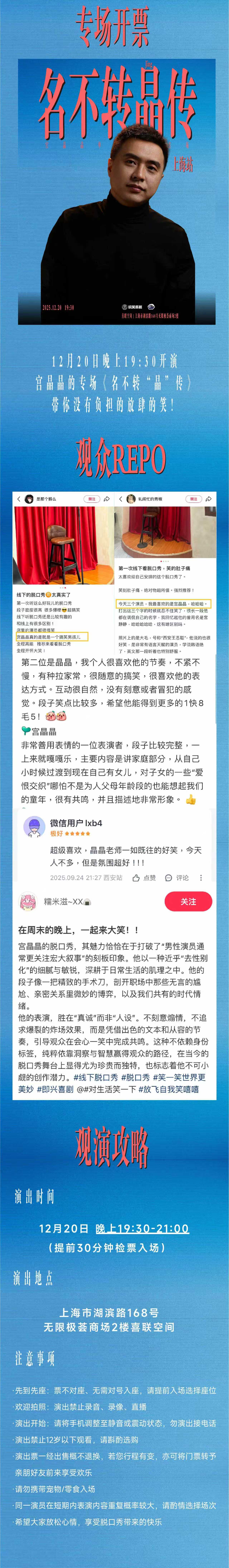 【上海】12月20日周六19:30 宫晶晶单口喜剧专场《名不转晶传》|喜剧联盒国@新天地 · 喜联空间