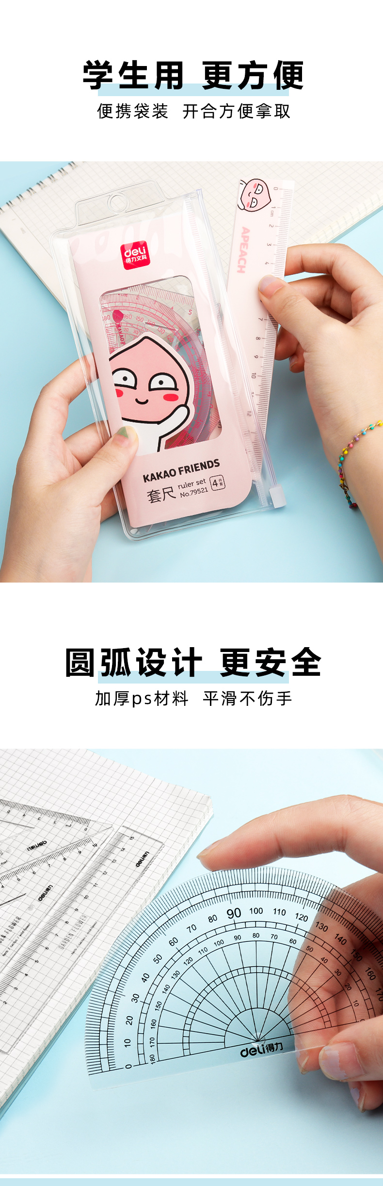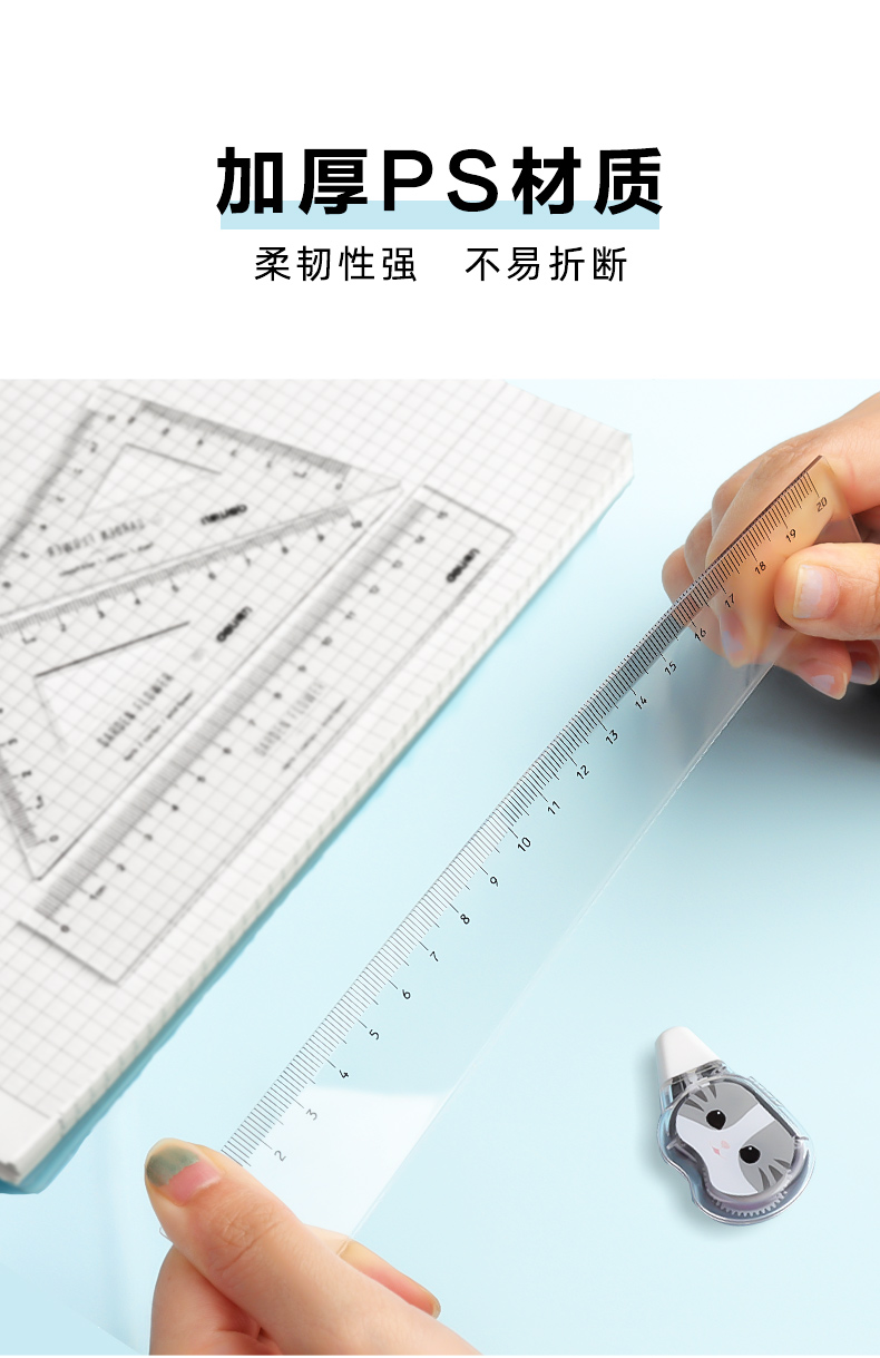 「9.9元包邮!四件套」得力套尺四件套小学生直尺三角尺可爱尺子透明多功能套装
