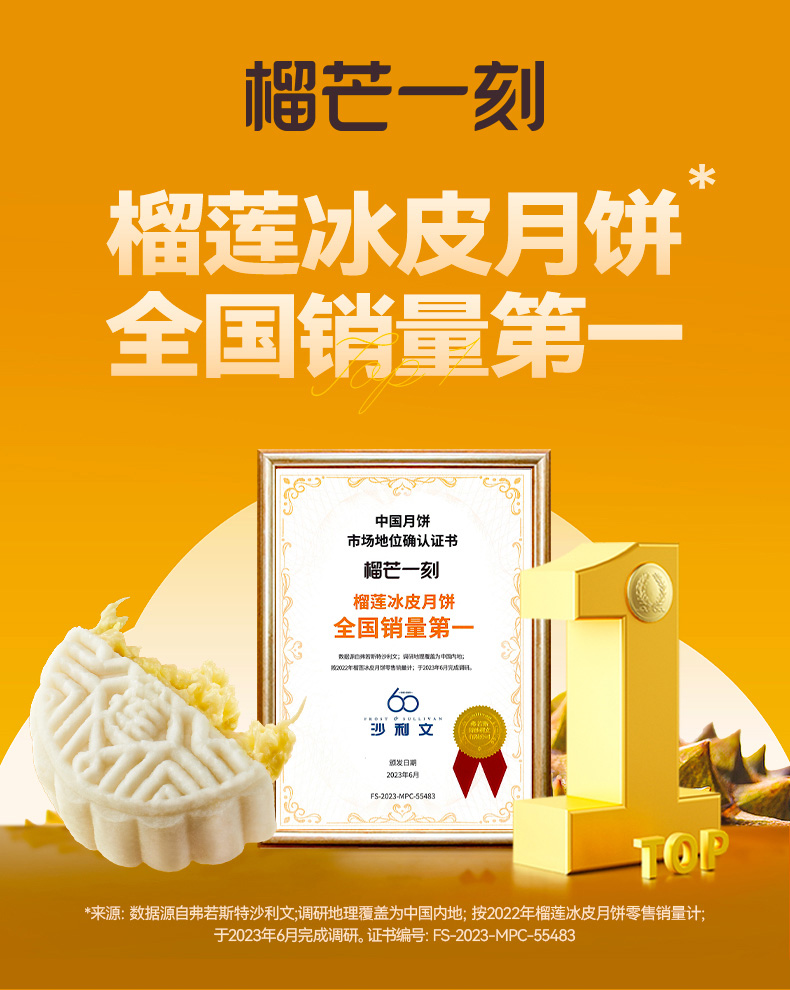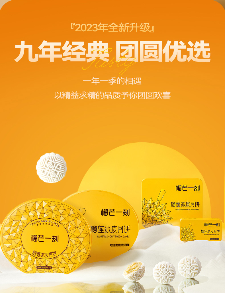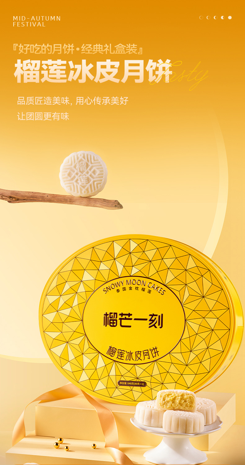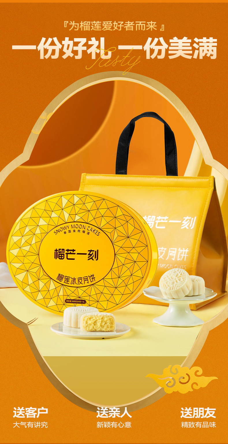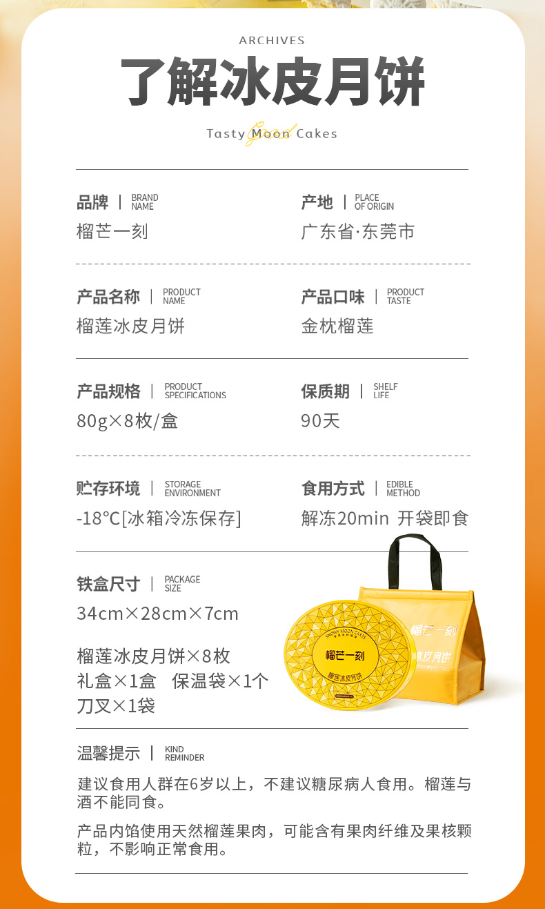 榴芒一刻 金枕榴莲冰皮月饼 80g*8枚