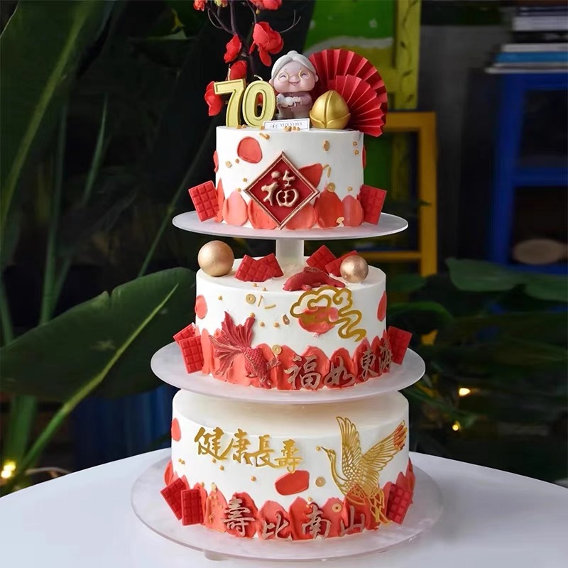 【三层祝寿蛋糕 888】祝寿蛋糕公仔可以换-鲜果奶油蛋糕
