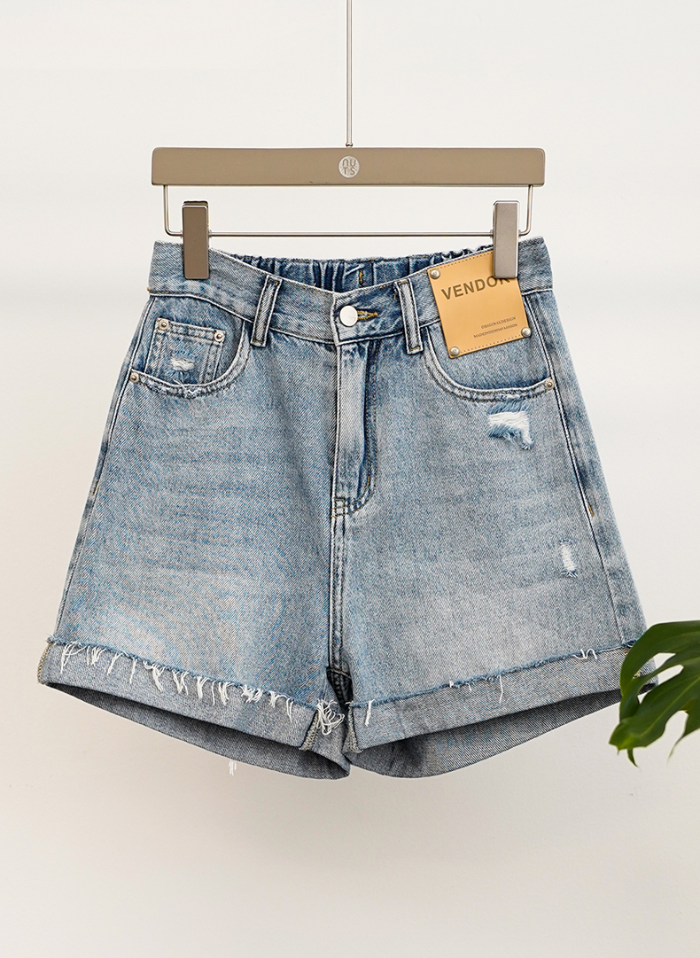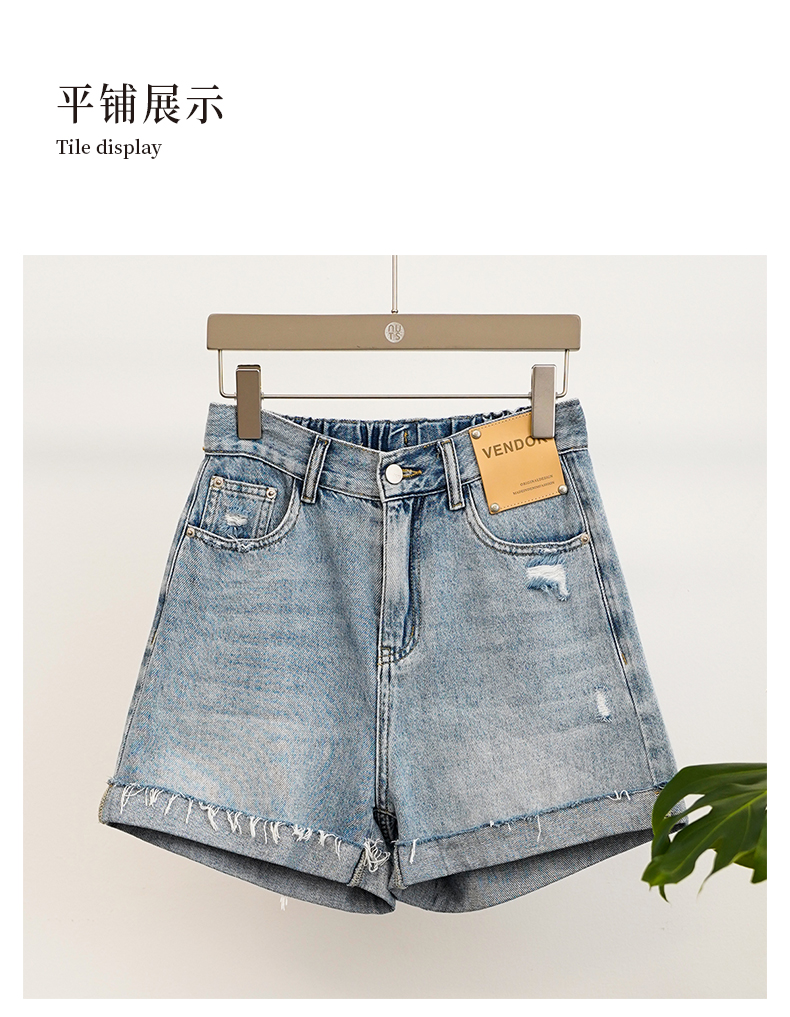 NUTS夏季新品时尚百搭破洞毛边设计感显瘦水洗牛仔短裤326111442