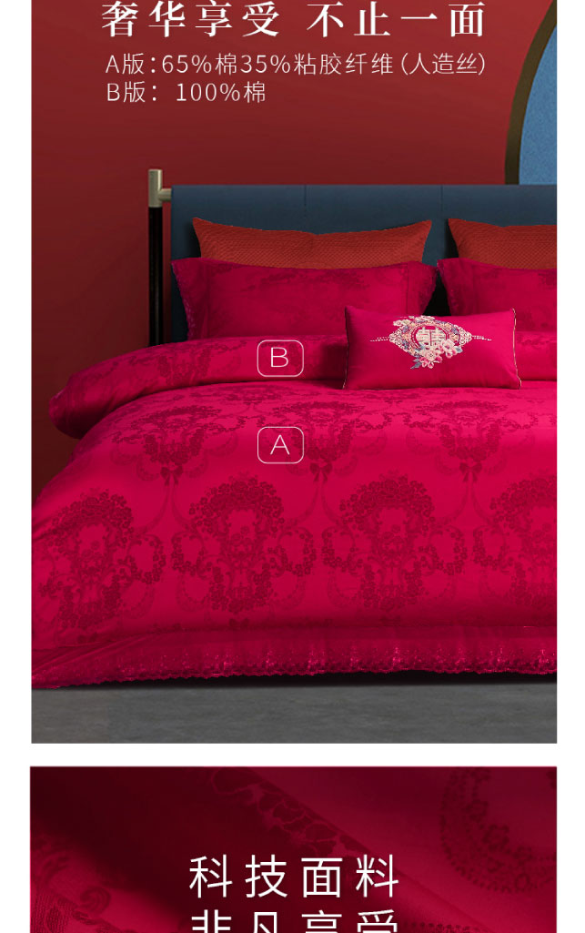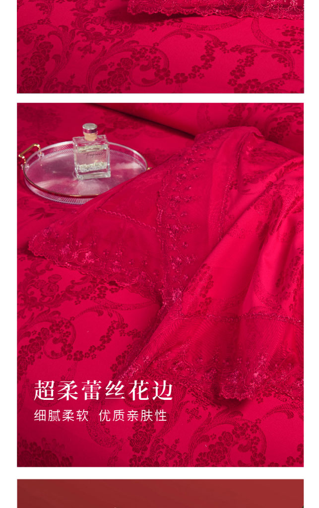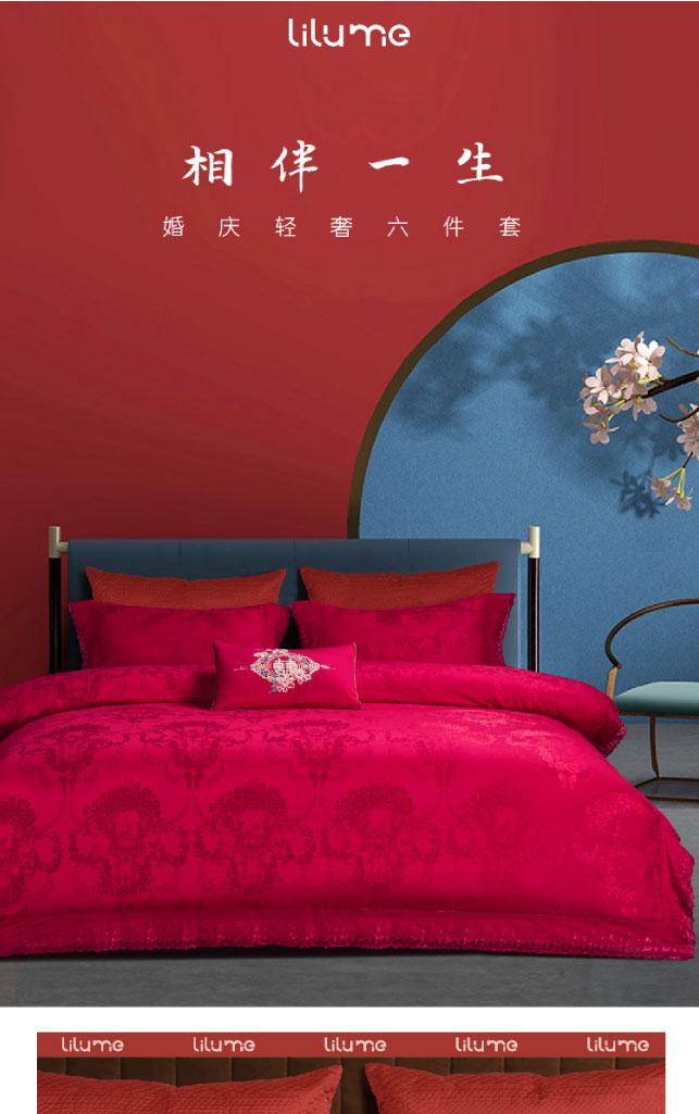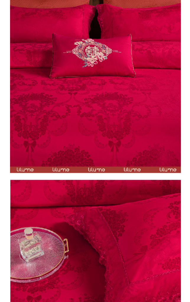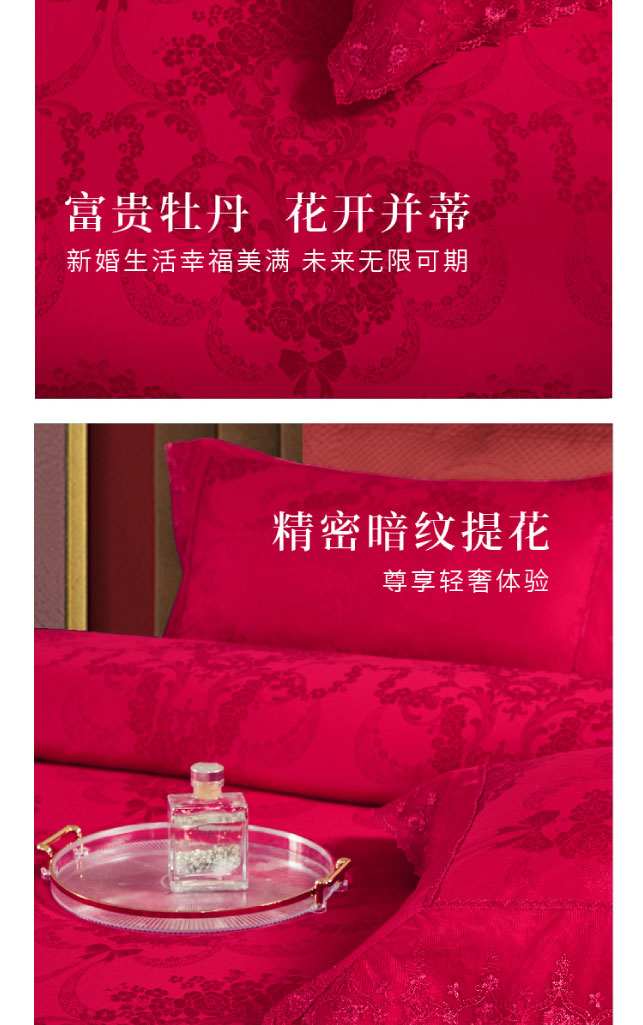 利路米大红提花婚庆四件套相伴一生