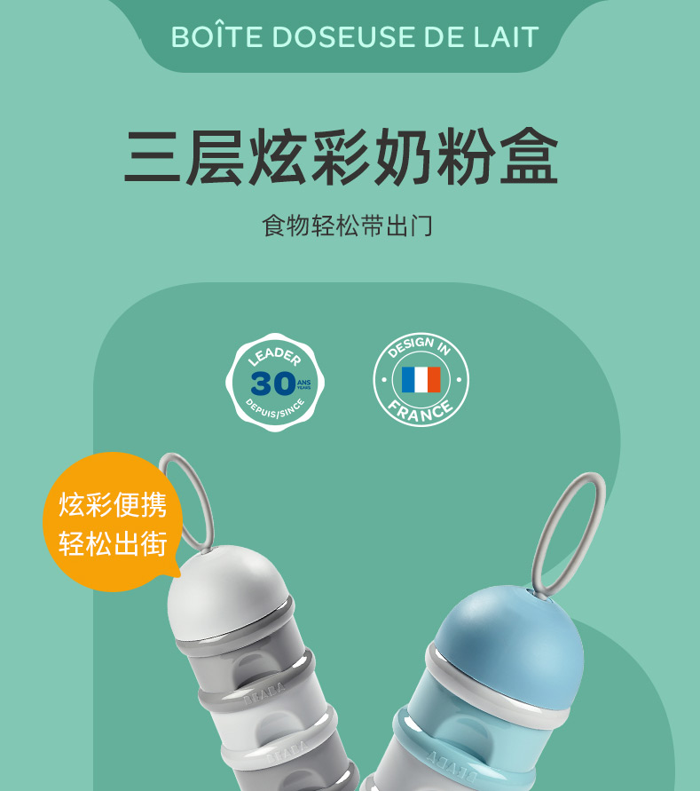 法国Beaba奶粉分装盒宝宝零食盒便携外出分类格密封储存罐