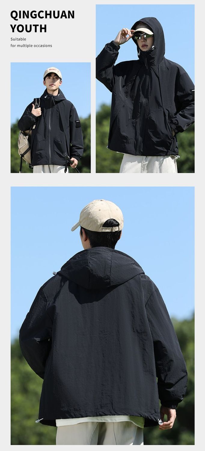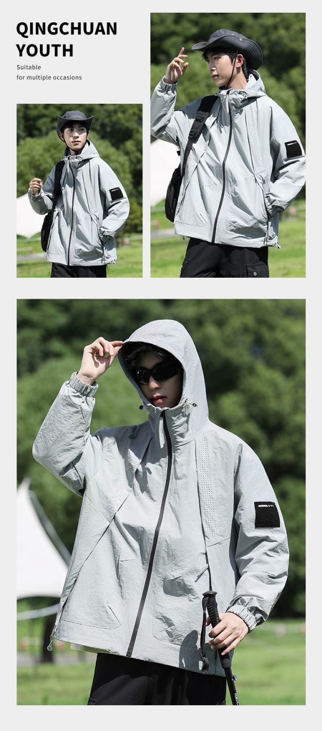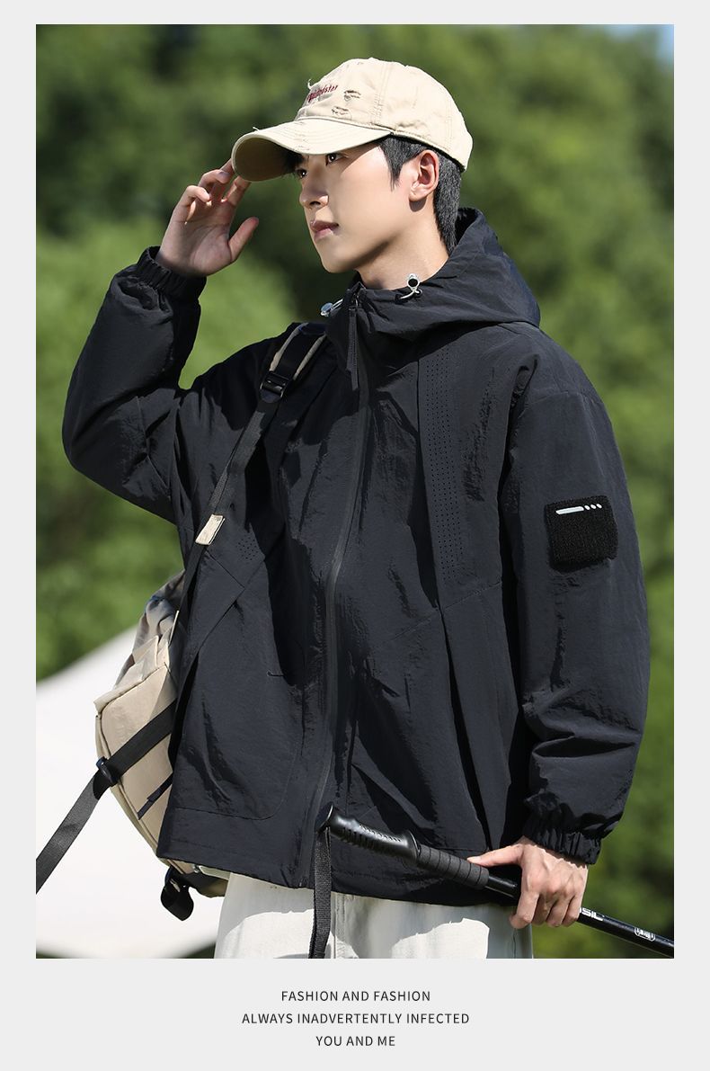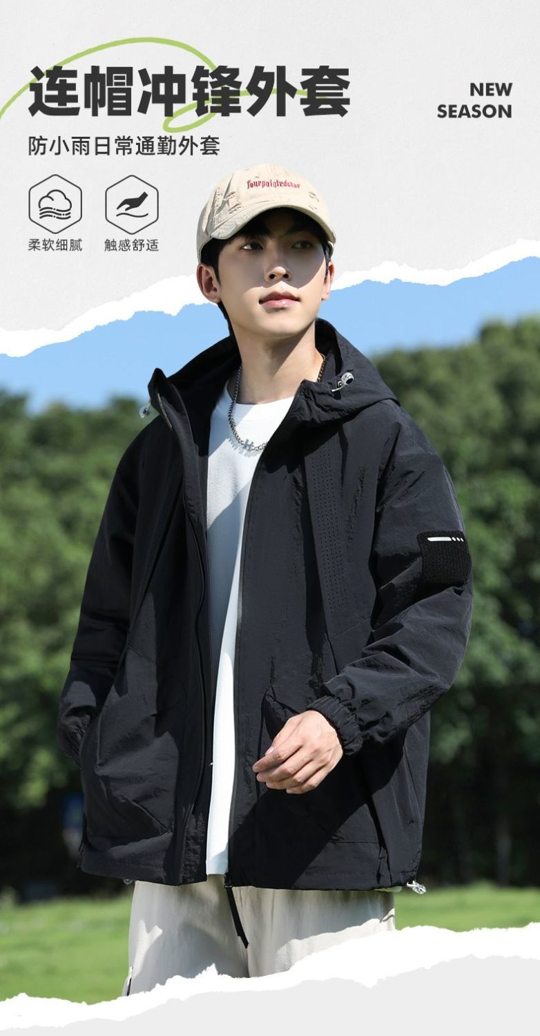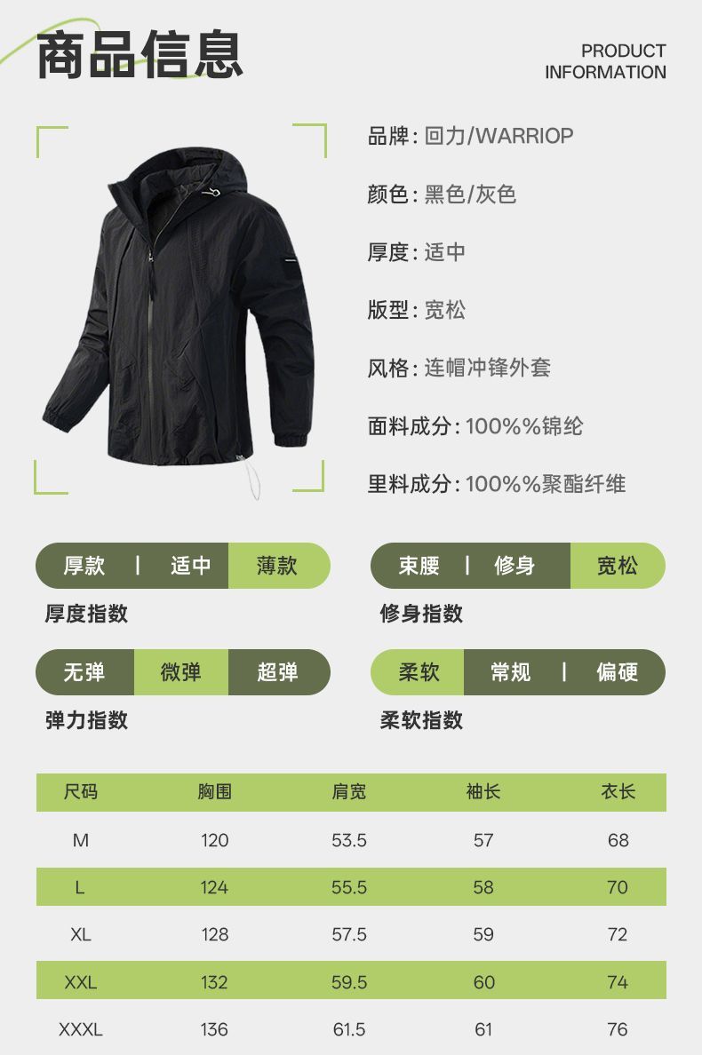 回力户外防水防风带帽冲锋夹克男2025秋季新款宽松尼龙通勤外套潮