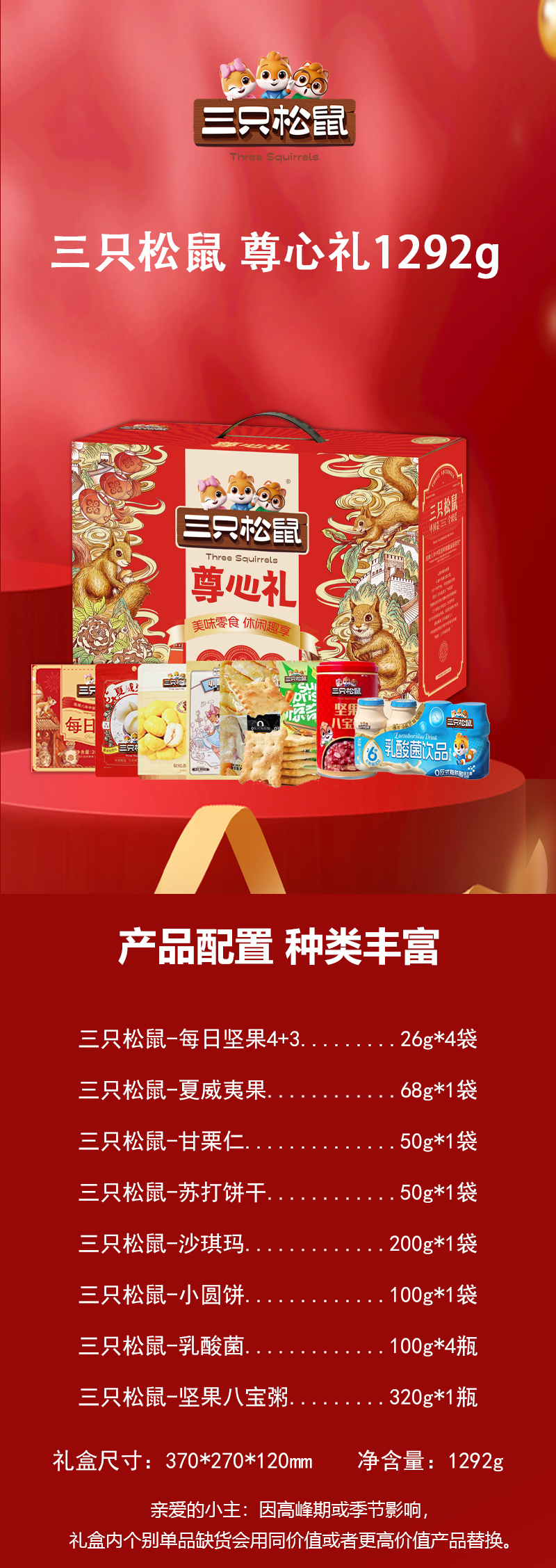 三只松鼠 尊心坚果礼盒休闲零食1292g-XJ