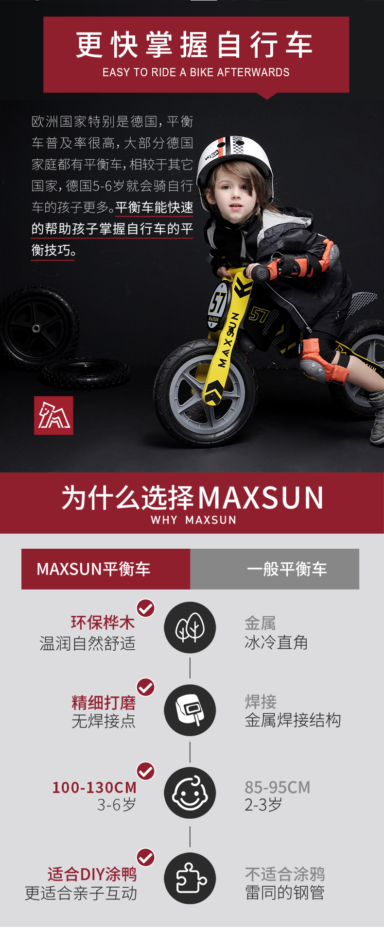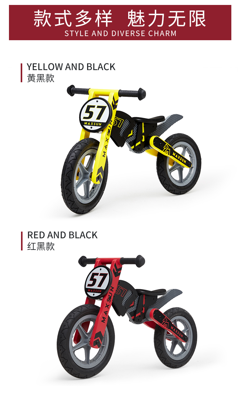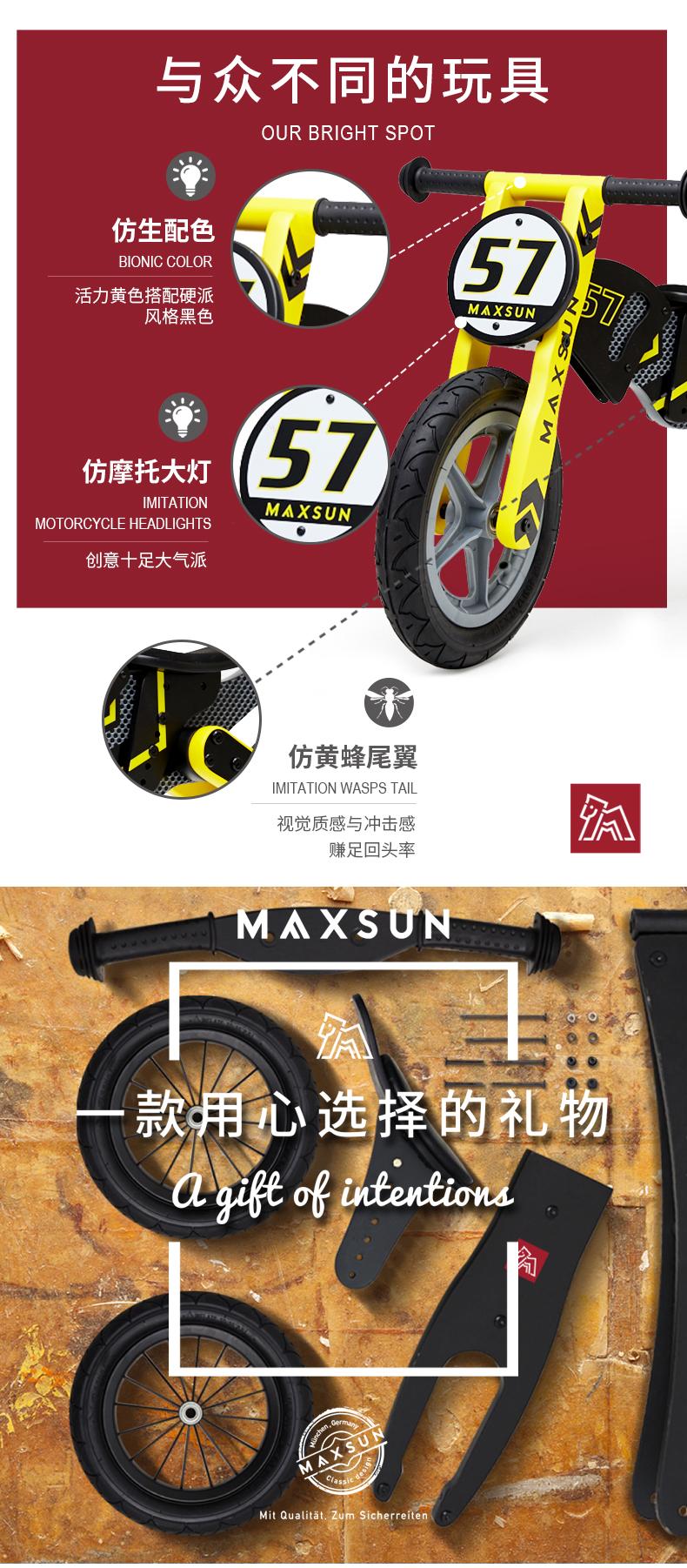 【双十一特价】德国MAXSUN3-7岁儿童平衡车机车系自行车无脚踏木制滑步车